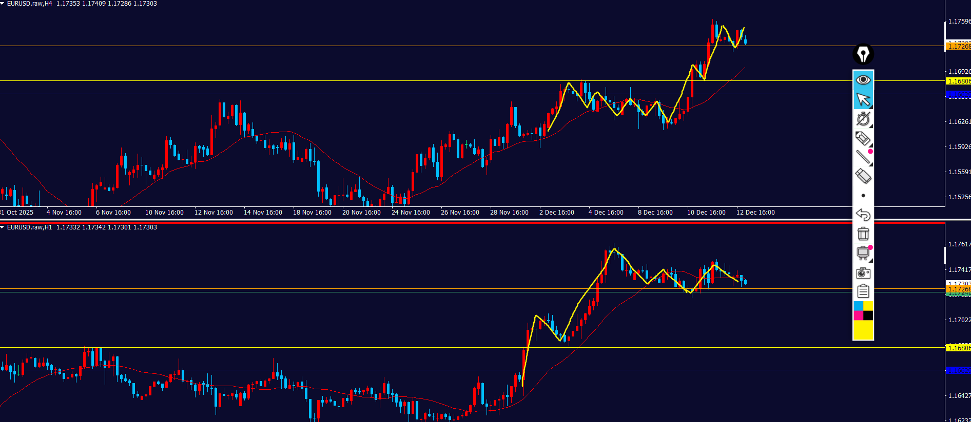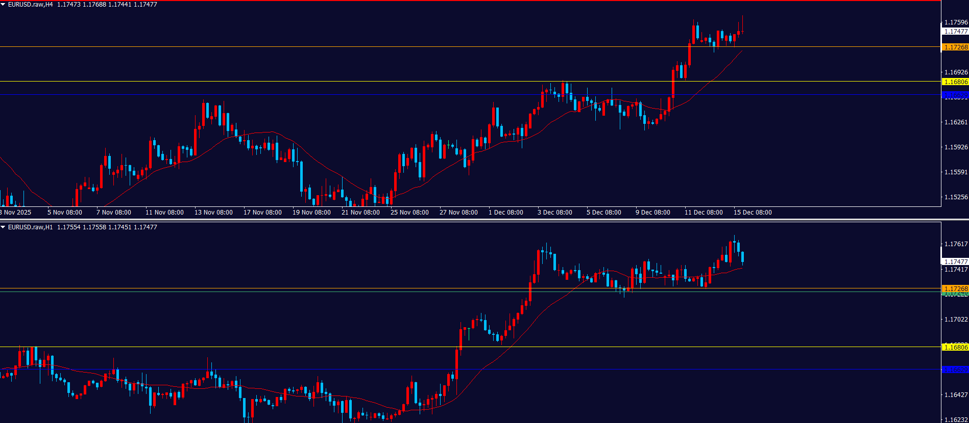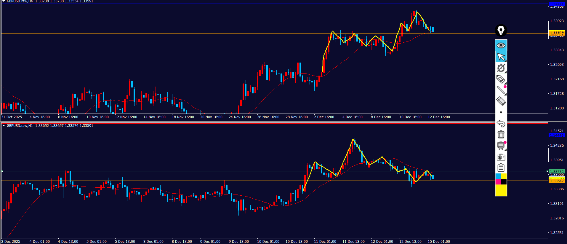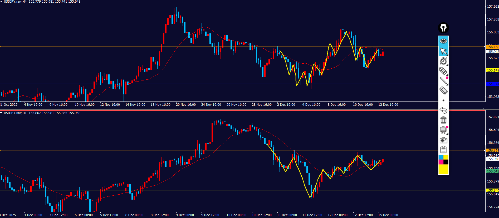 - 「4時間」の波が止まって押し目買い(戻り売り)エリアで入る