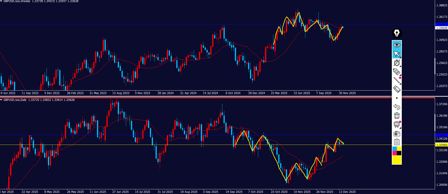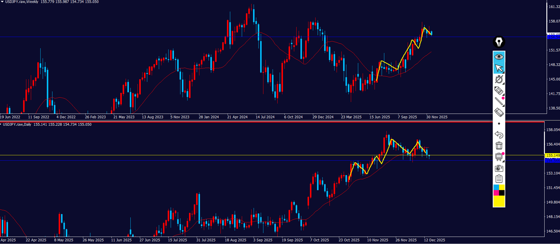 また、エントリーした場合も週足の押し目買いのリスクがあるので、チャートから目を離せるようなエントリーではない
