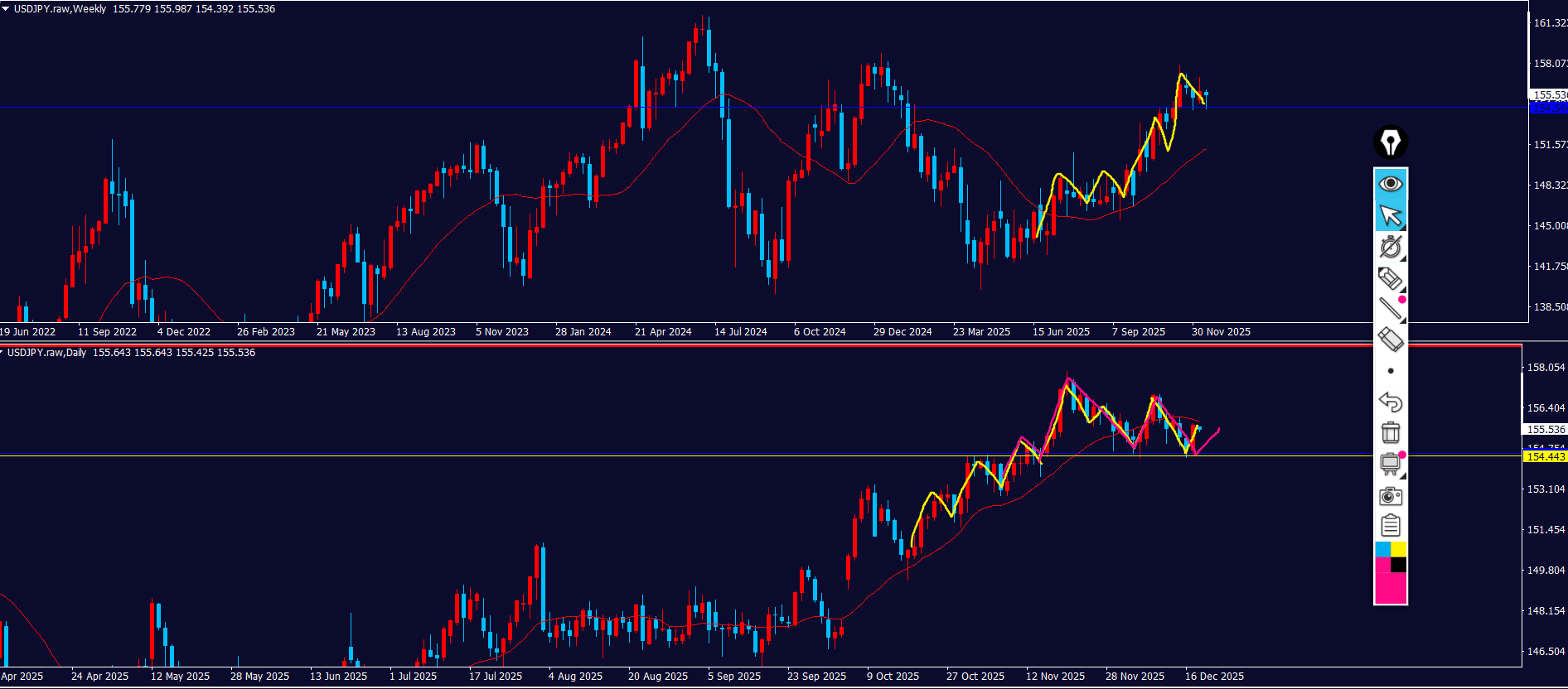 1hの上昇が弱まってきてるので、下降転換後に再度上昇トレンド転換していくところを狙っていくことになる。