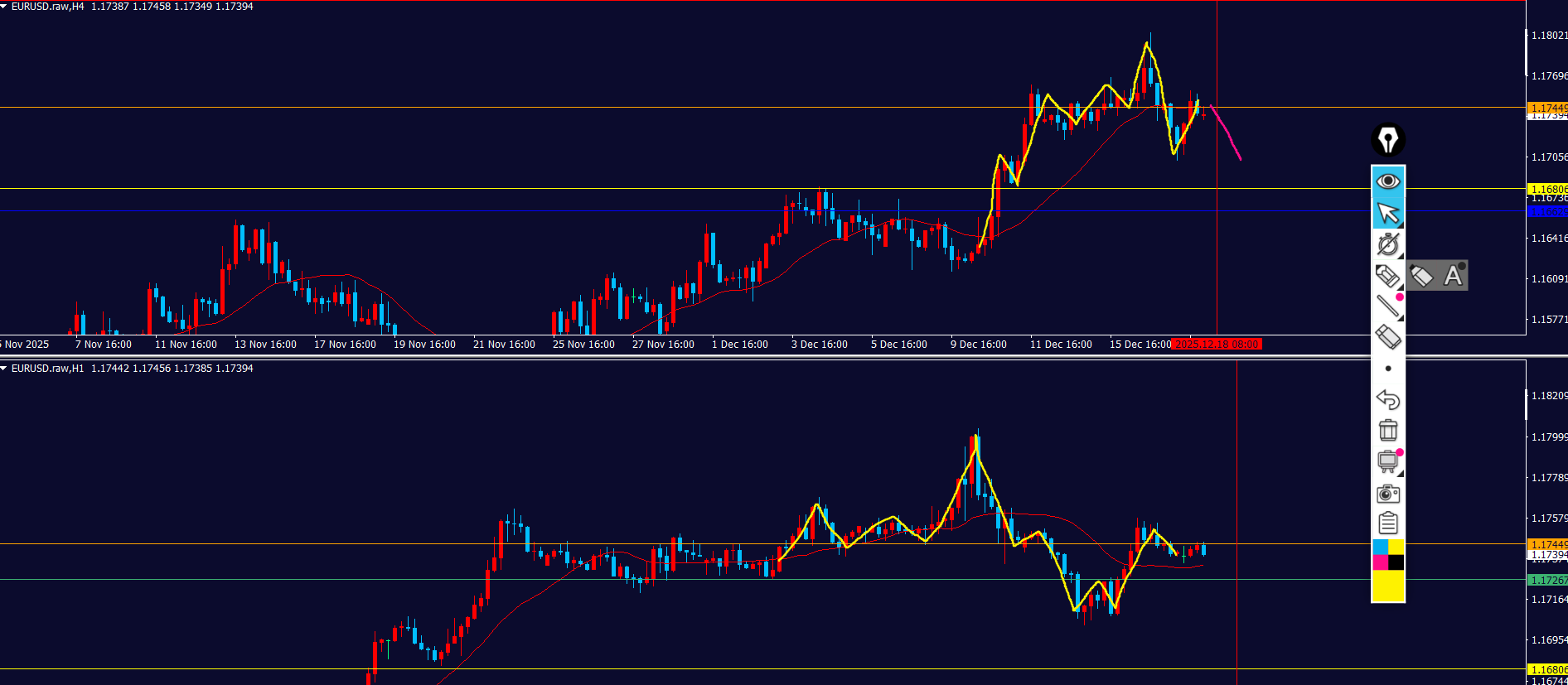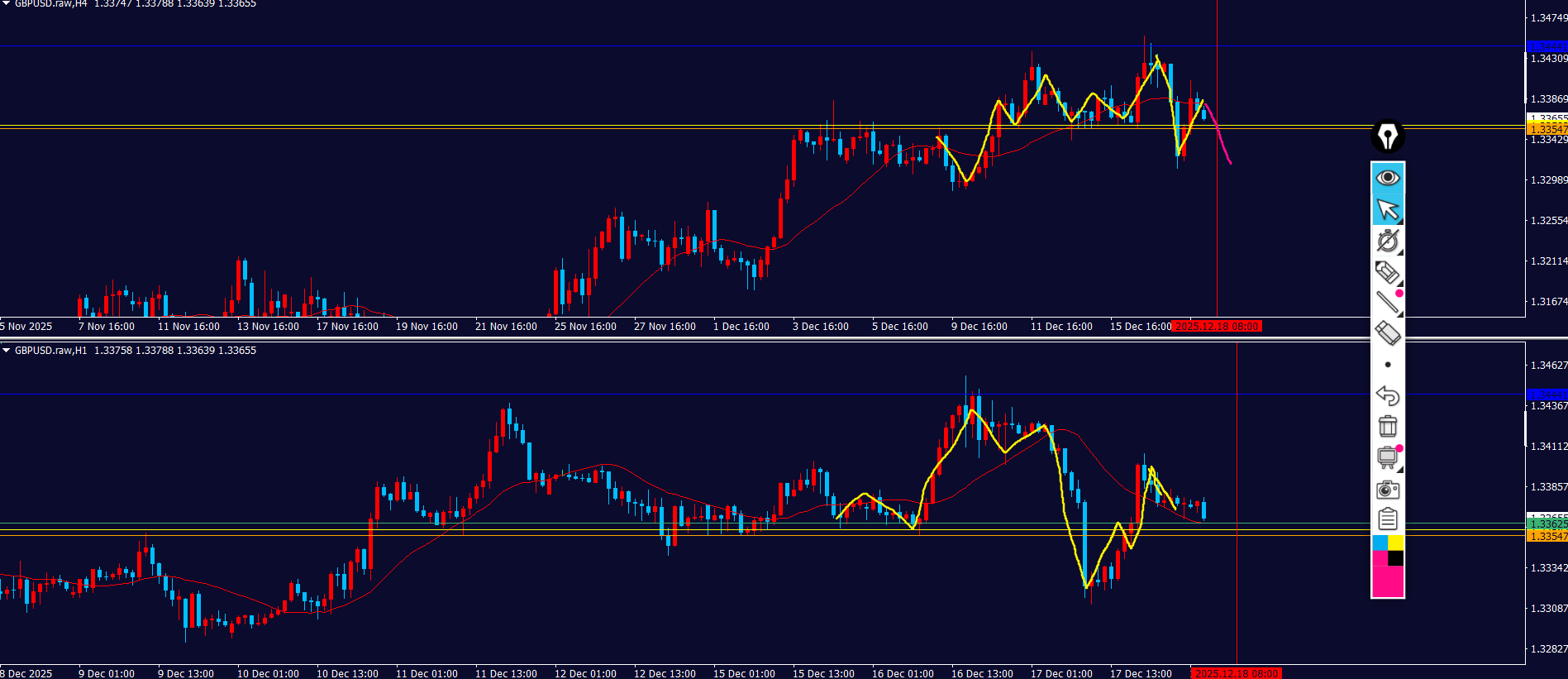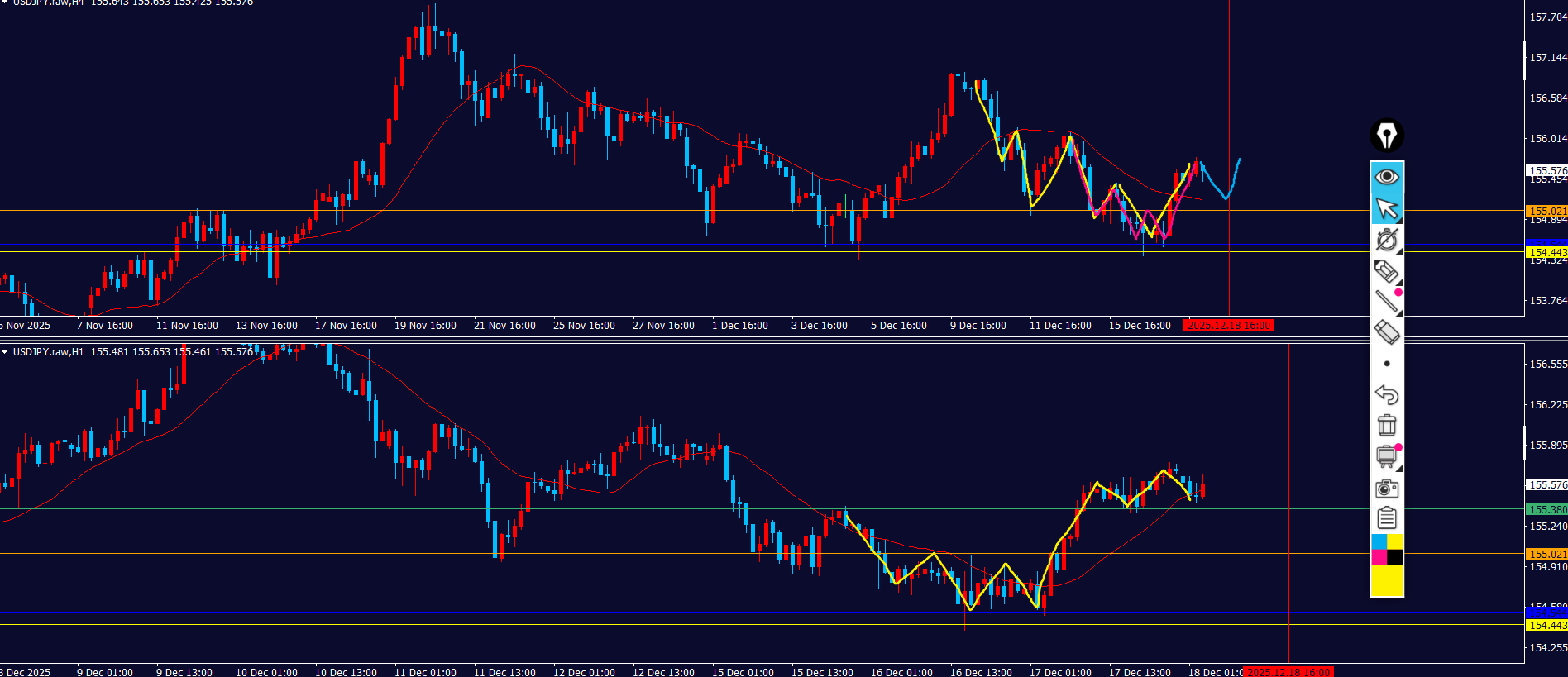 - 「4時間」の波が止まって押し目買い(戻り売り)エリアで入る