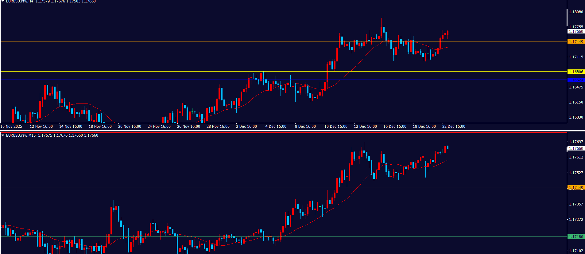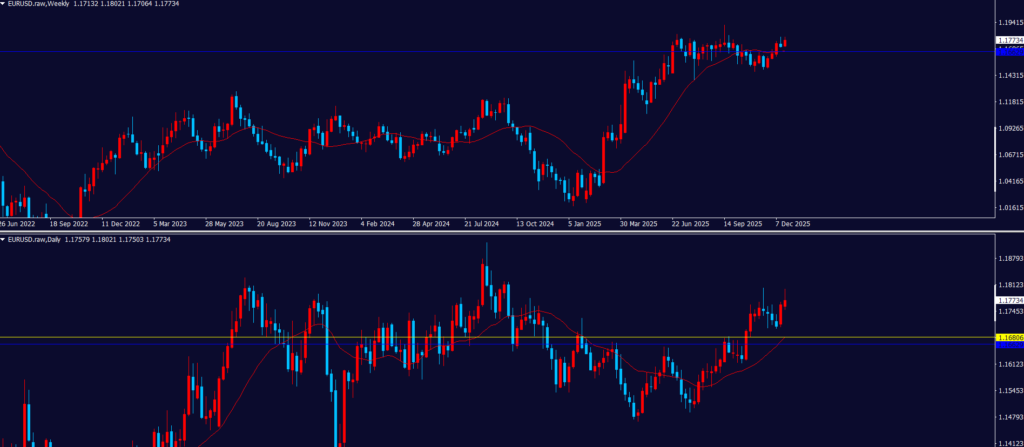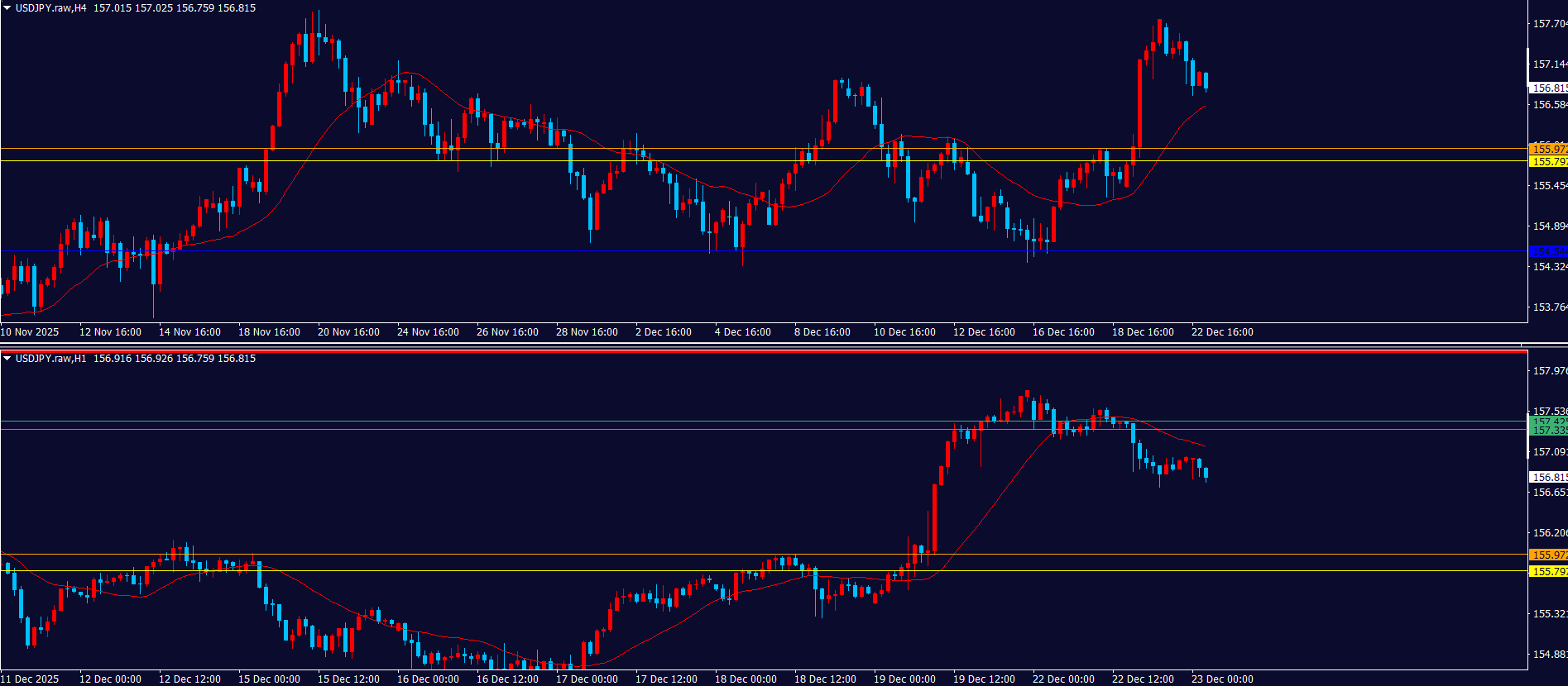 4hの全戻し+日足の押し目買いVS週足の戻り売りの戦争状態。