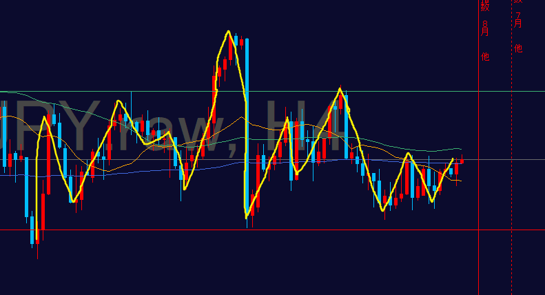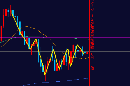 そこから下に下がらず、もう一つの紫ラインで買い支えられている。