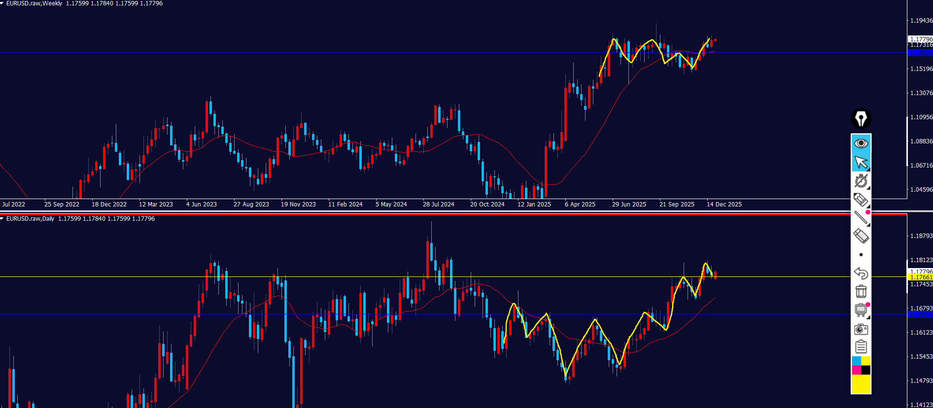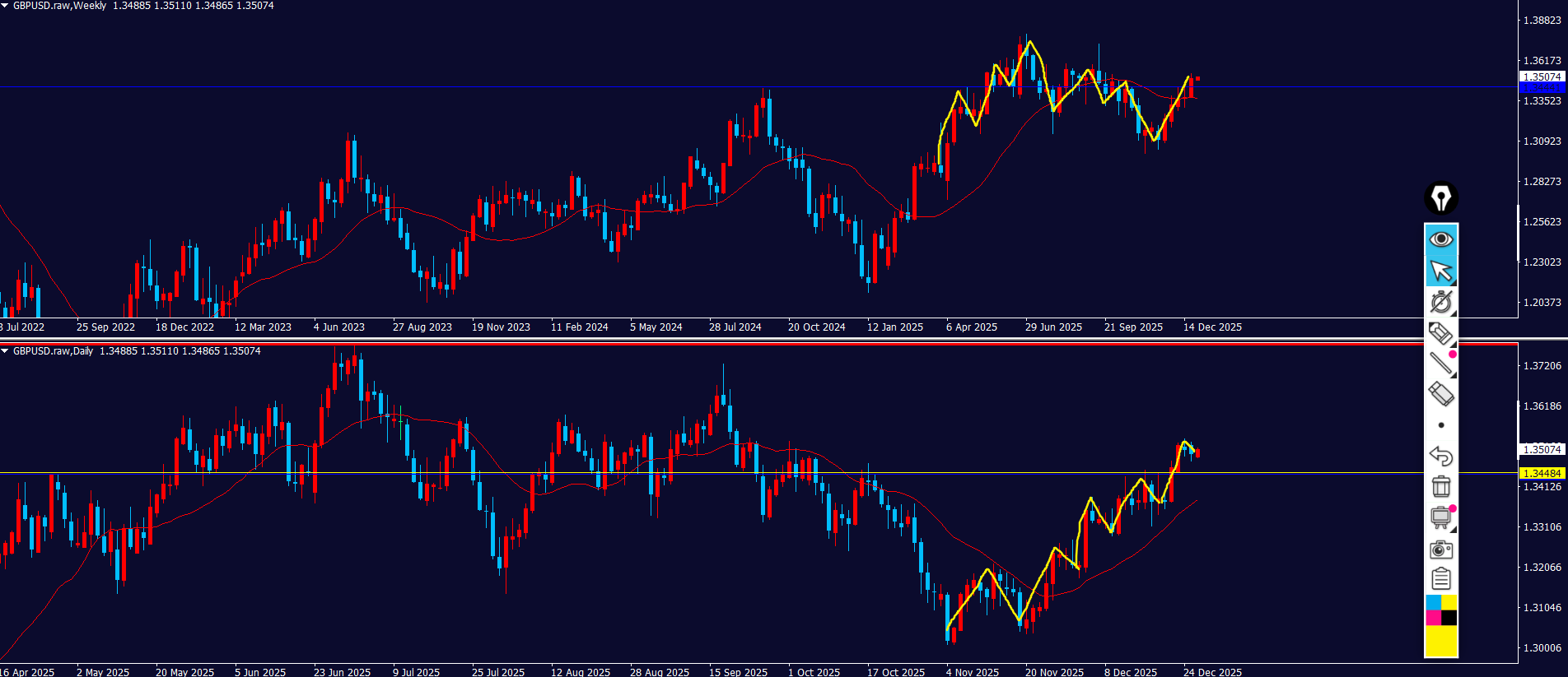 ピンクのダウカウントも見えるので、現時点で積極的に押し目買いは狙いに行かない