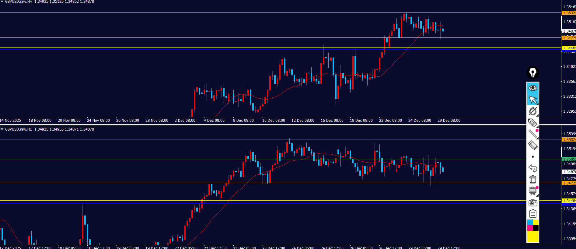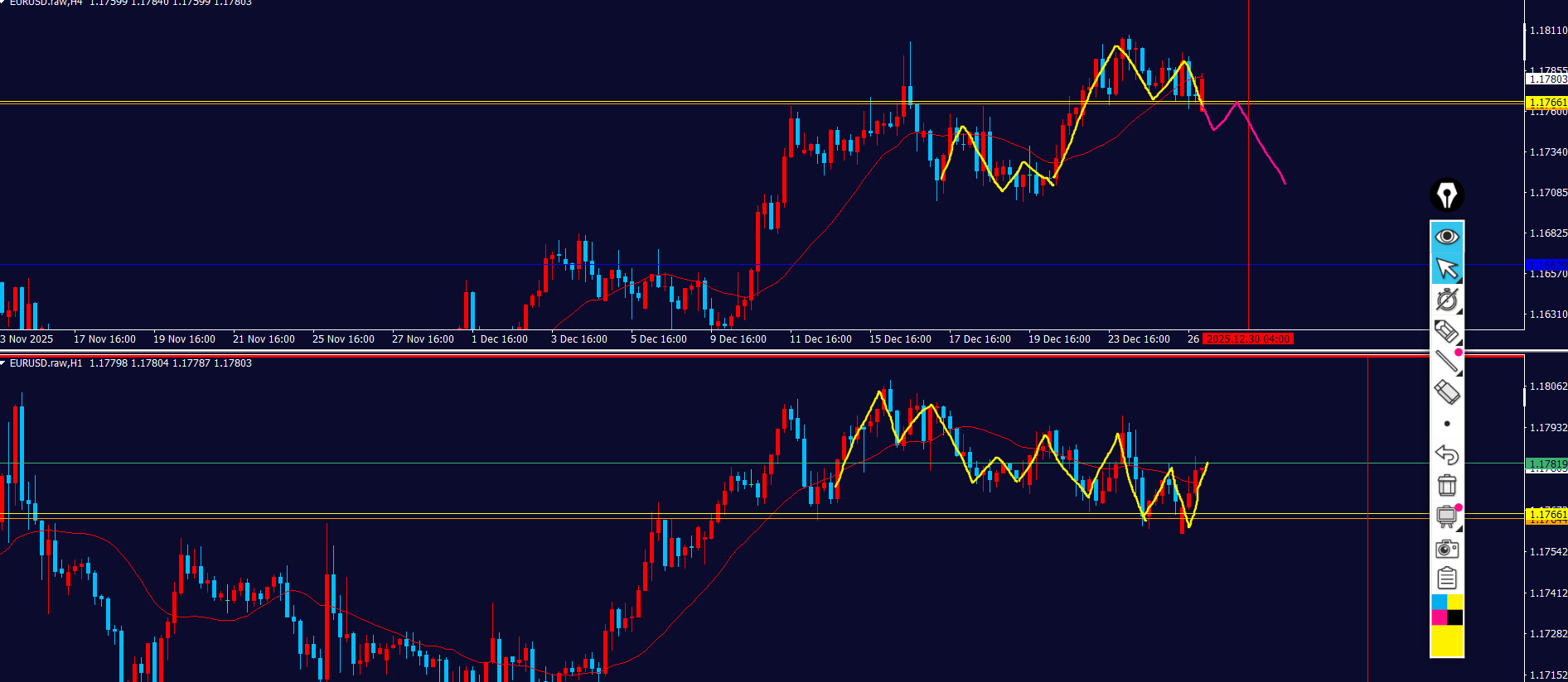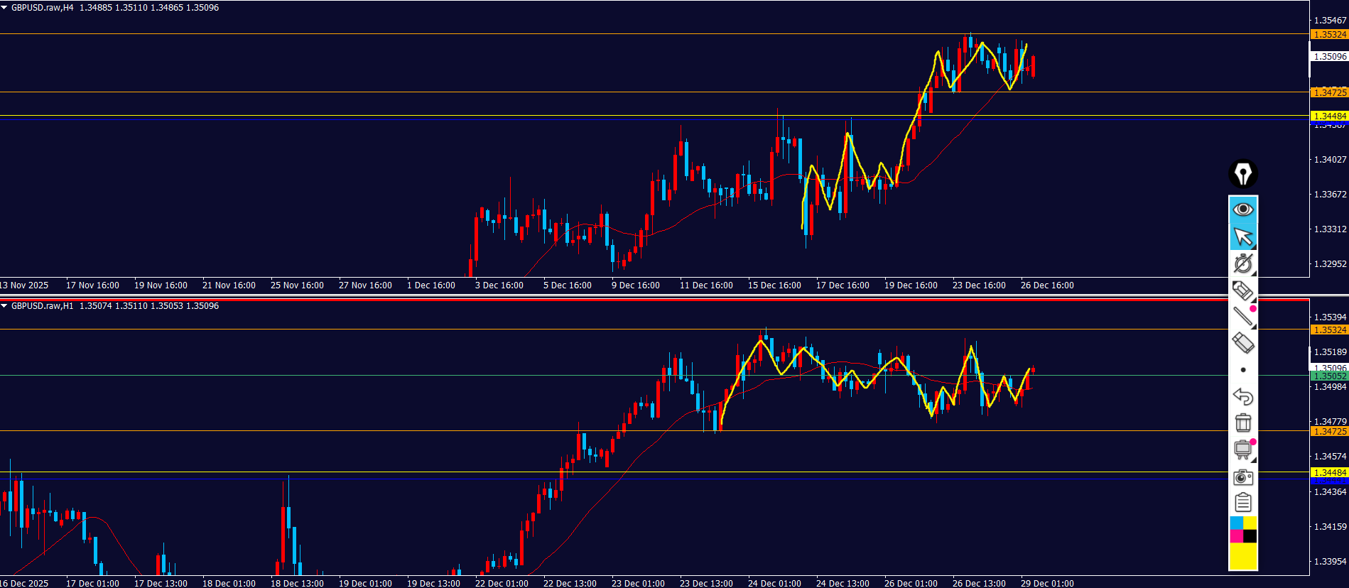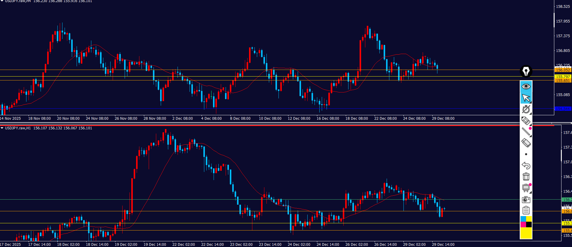 - 「4時間」の波が止まって押し目買い(戻り売り)エリアで入る