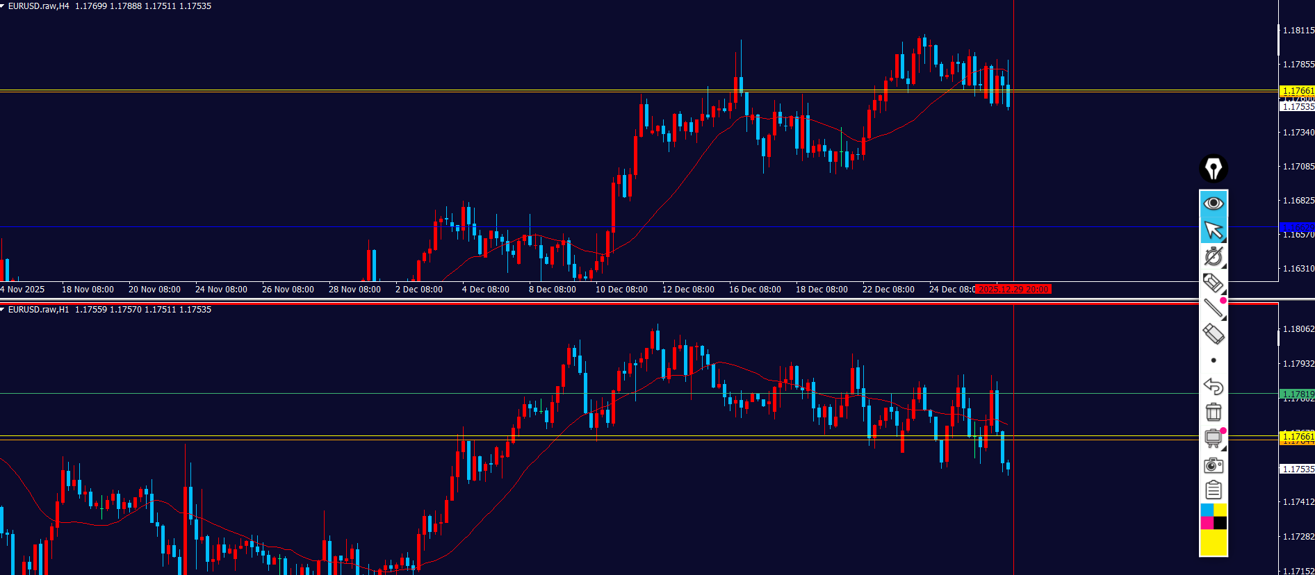 - エントリポイントが来たと思ったら、下位足⇒上位足を確認して波のサイズに違和感がないか最終確認