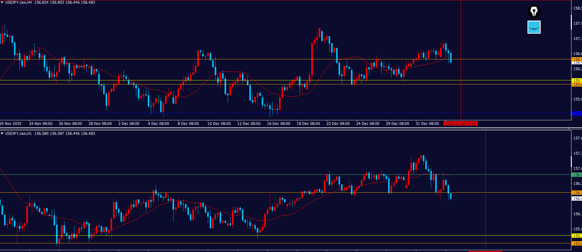 4hはまだ確定ではないので、ローソク足が戻されたら押し目買いではなく買い支えになるので注意