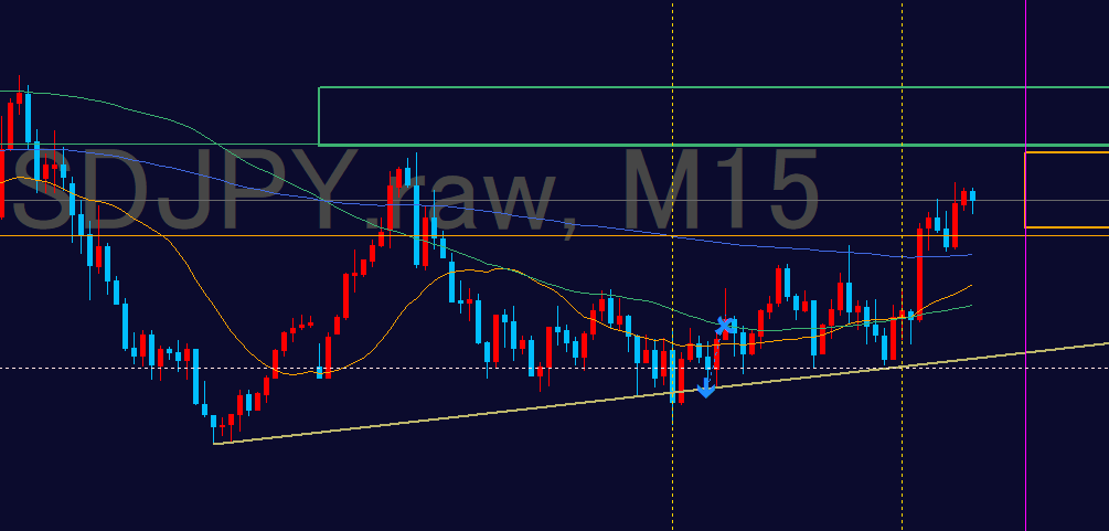 - 「4時間」の波が止まって押し目買い(戻り売り)エリアで入る