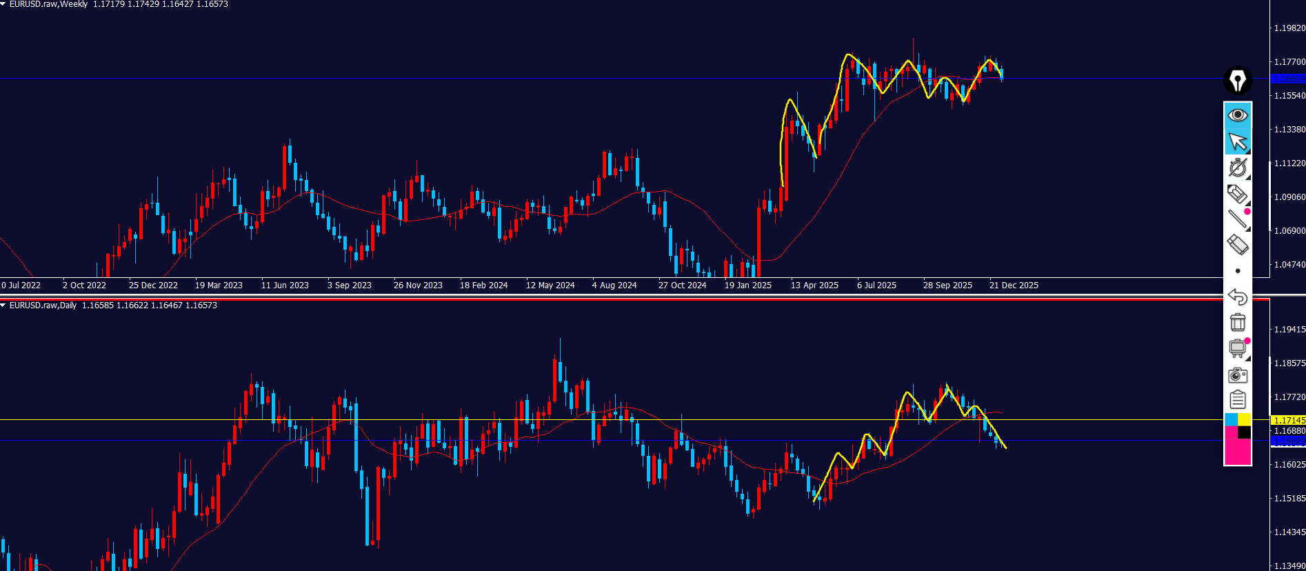 個人的には週足の環境認識から、買いの勢いは弱いと見てる