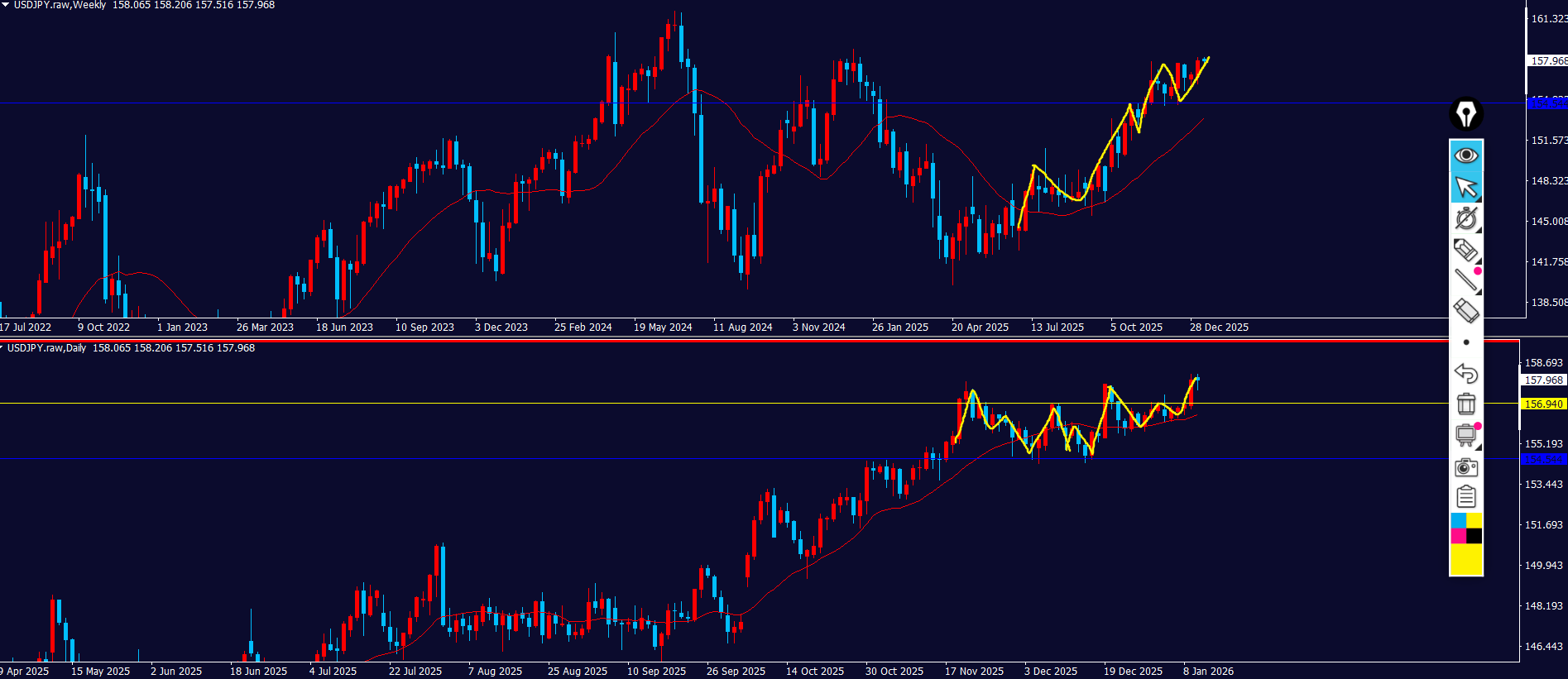 黄色ラインの下に押し目買い勢力がいる⇒波が出やすい