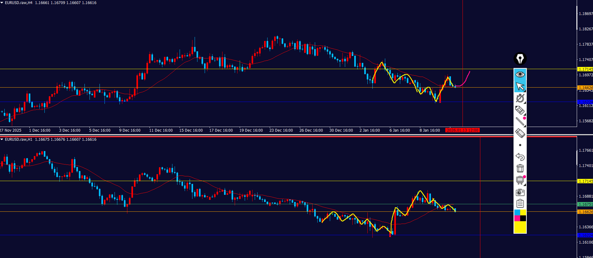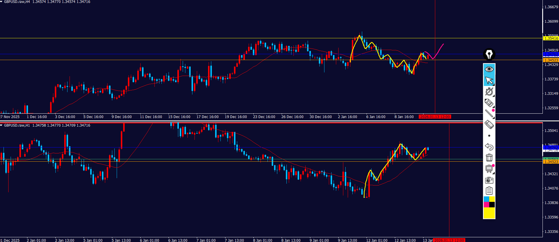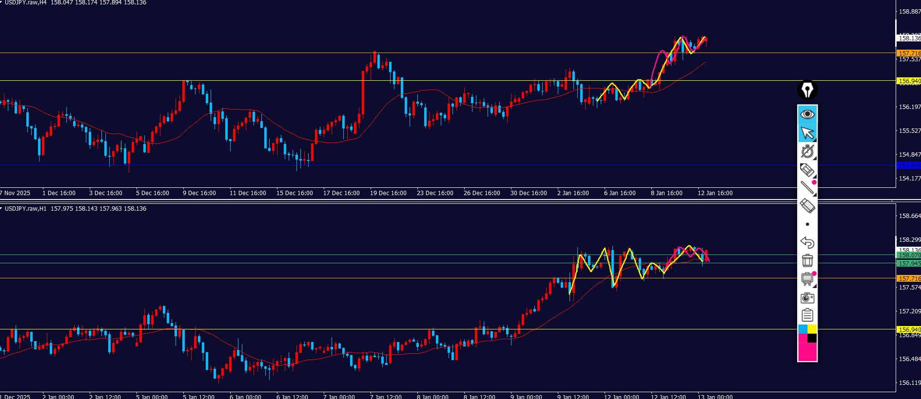 - 「4時間」の波が止まって押し目買い(戻り売り)エリアで入る