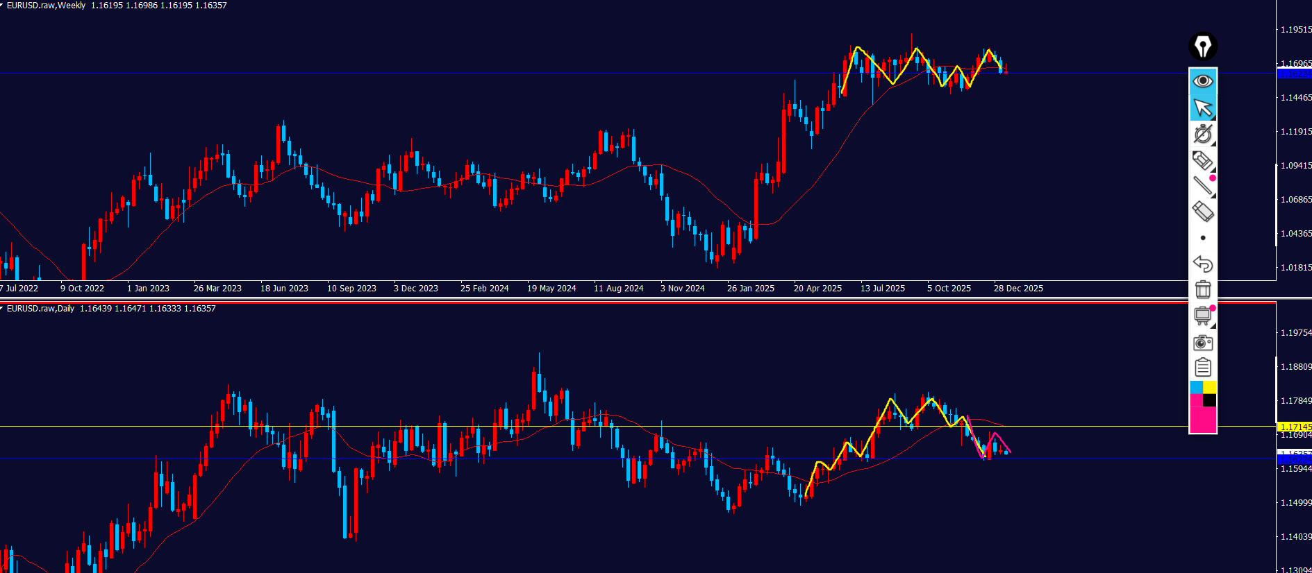 - エントリポイントが来たと思ったら、下位足⇒上位足を確認して波のサイズに違和感がないか最終確認