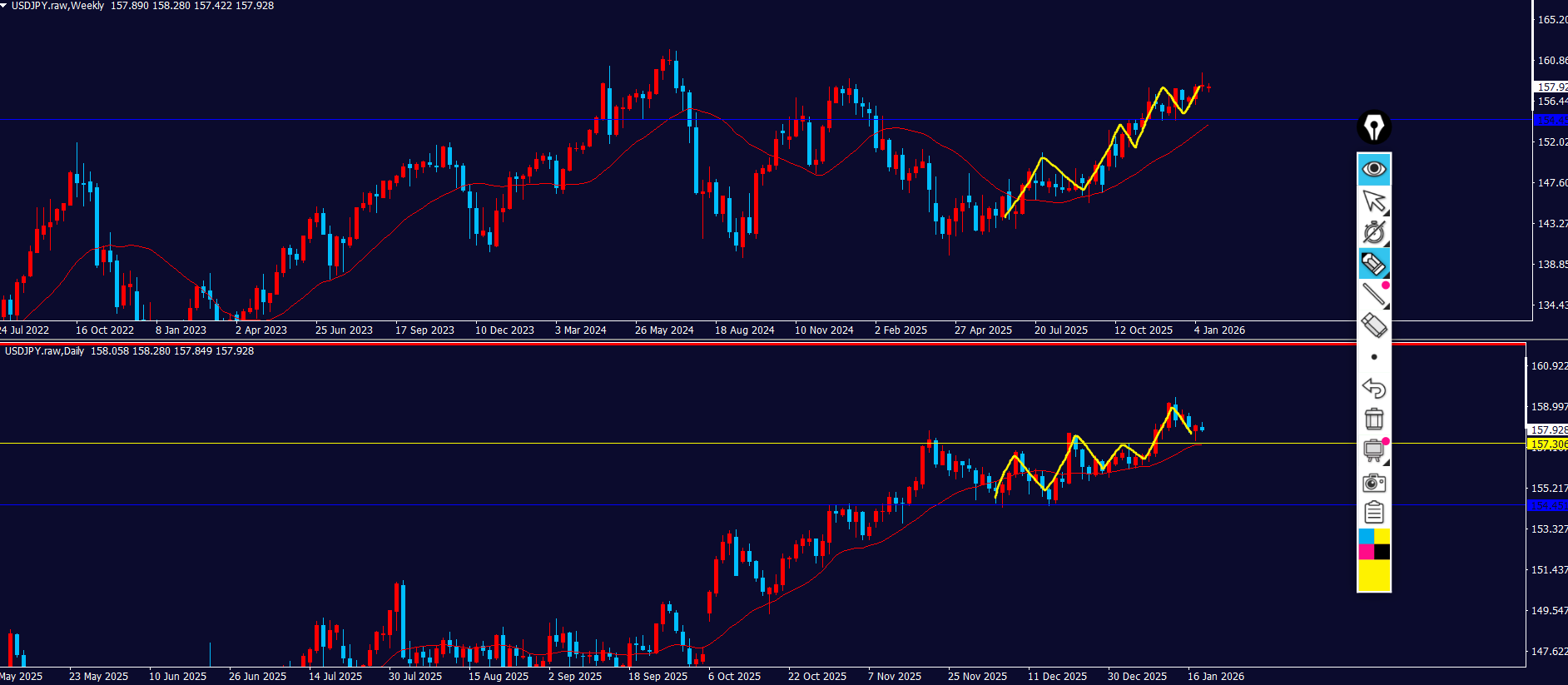- 日足ではメチャクチャ綺麗な押し目買いポイント。上位足リスクを意識しすぎるのも良くないが、エントリーできなくなるからと言って、侮りすぎるのも良くない。