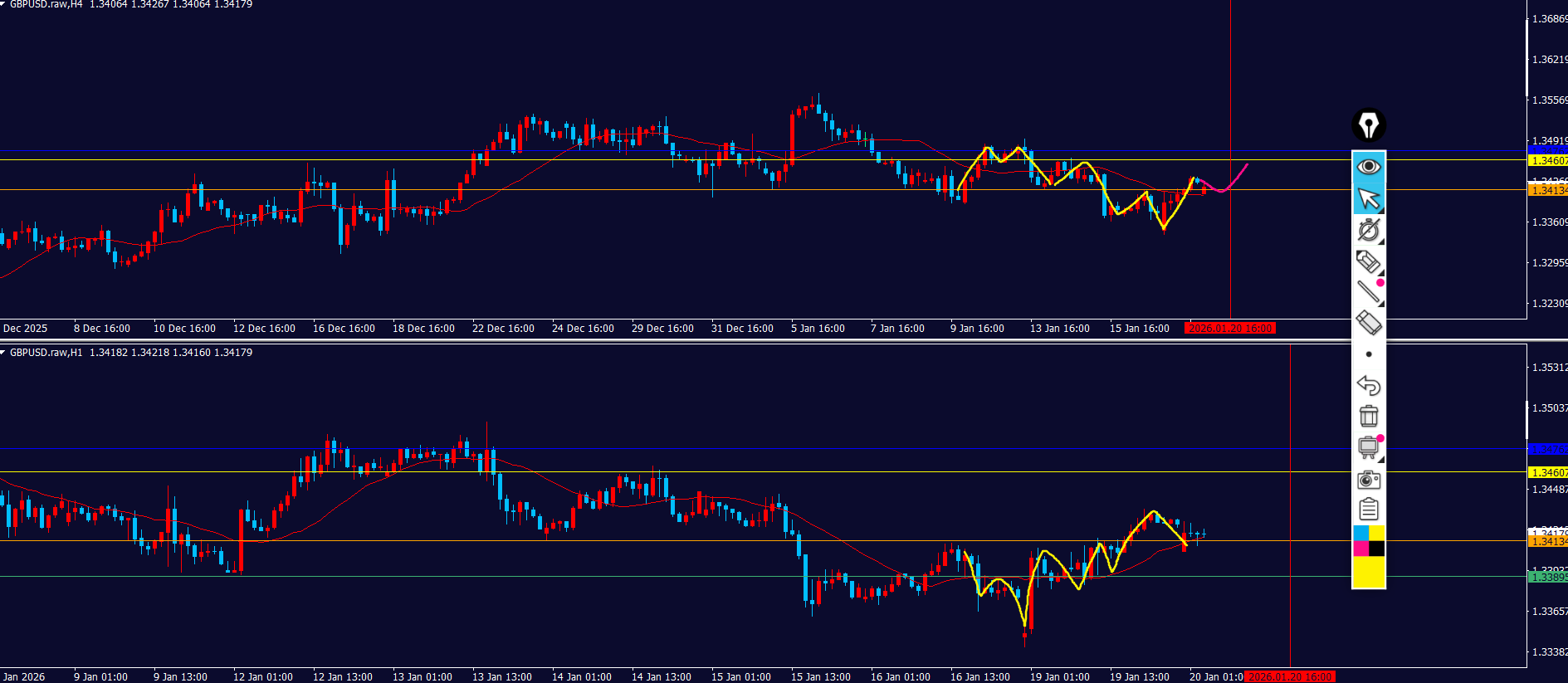 - 「4時間」の波が止まって押し目買い(戻り売り)エリアで入る