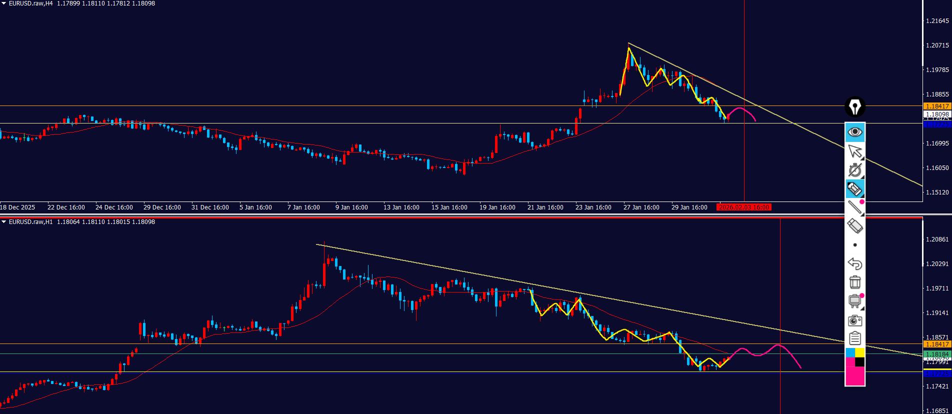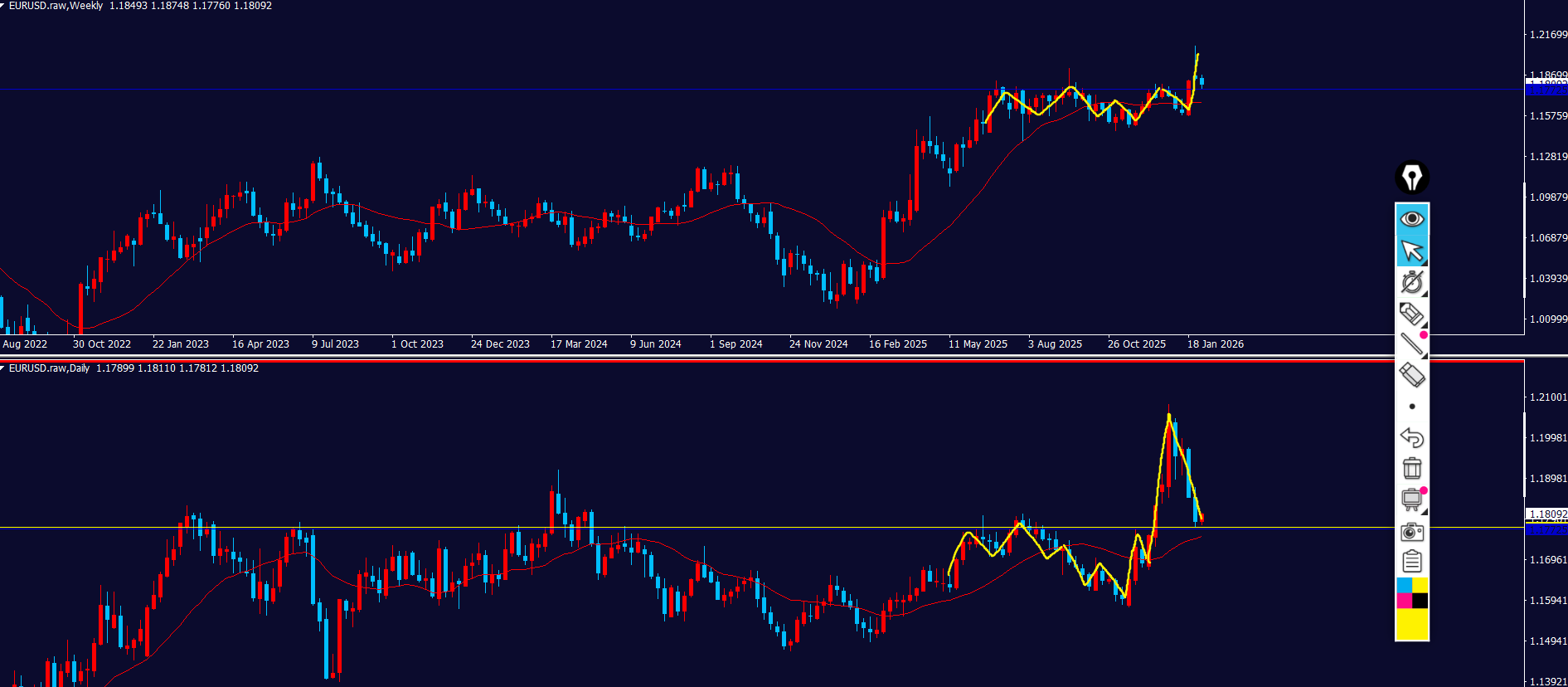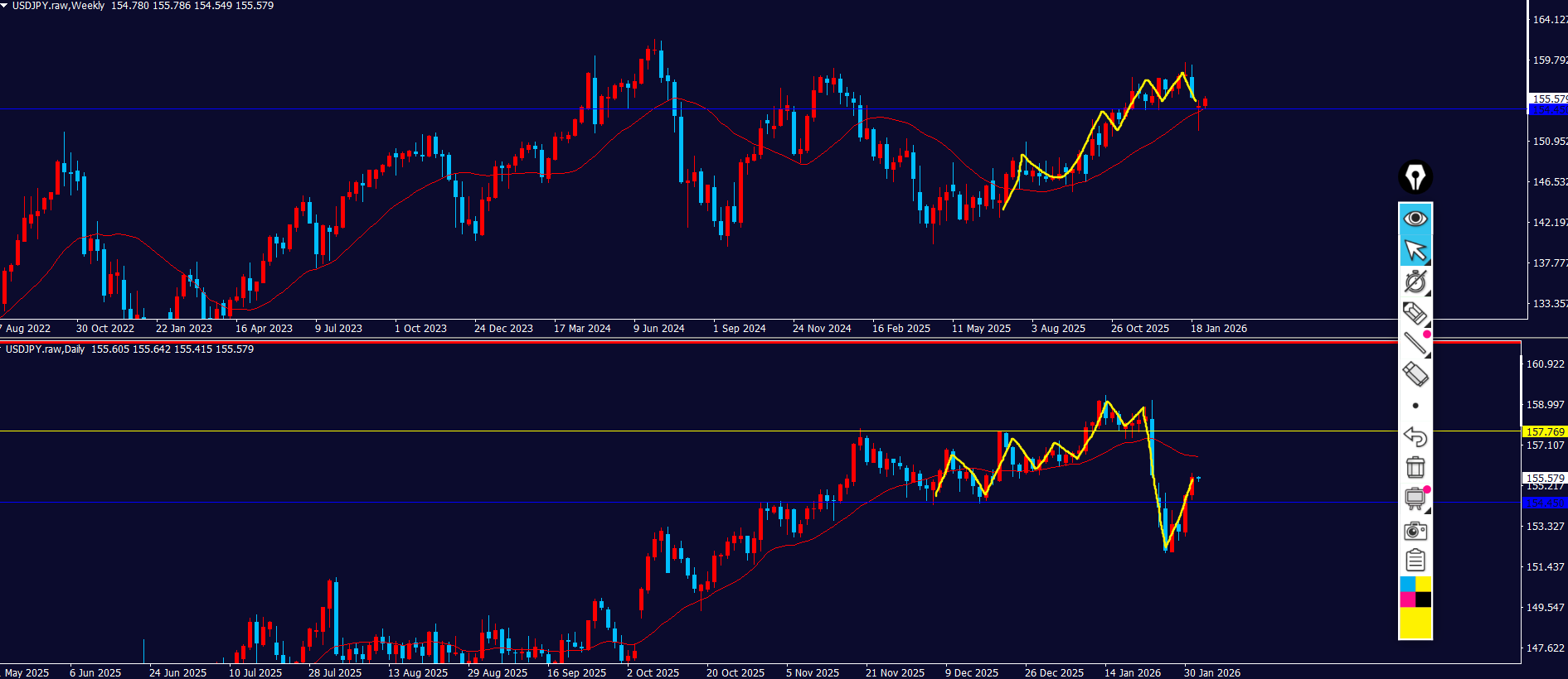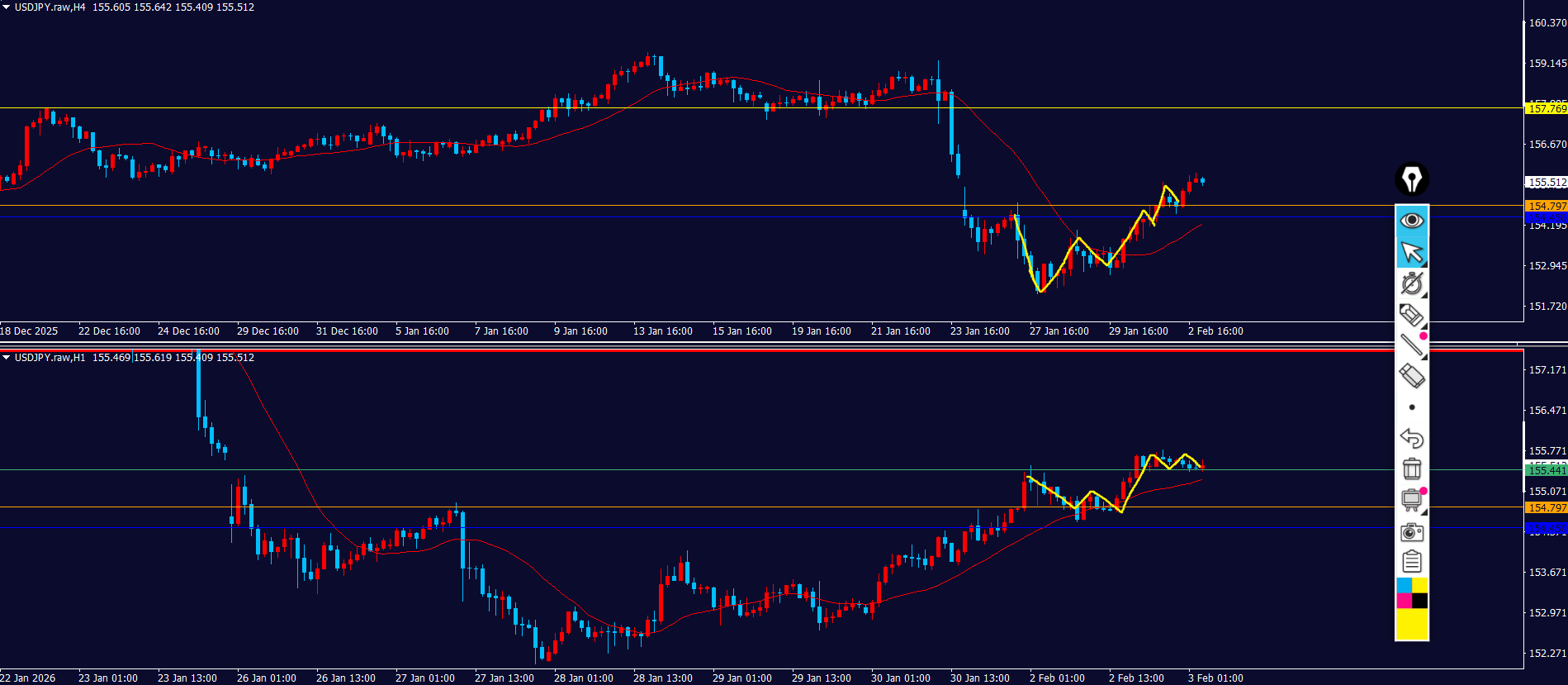 仮に伸ばすとしても日足のすごい強い買いの押し目買い付近なので、伸ばしすぎ注意。めちゃ不安定になりそう。