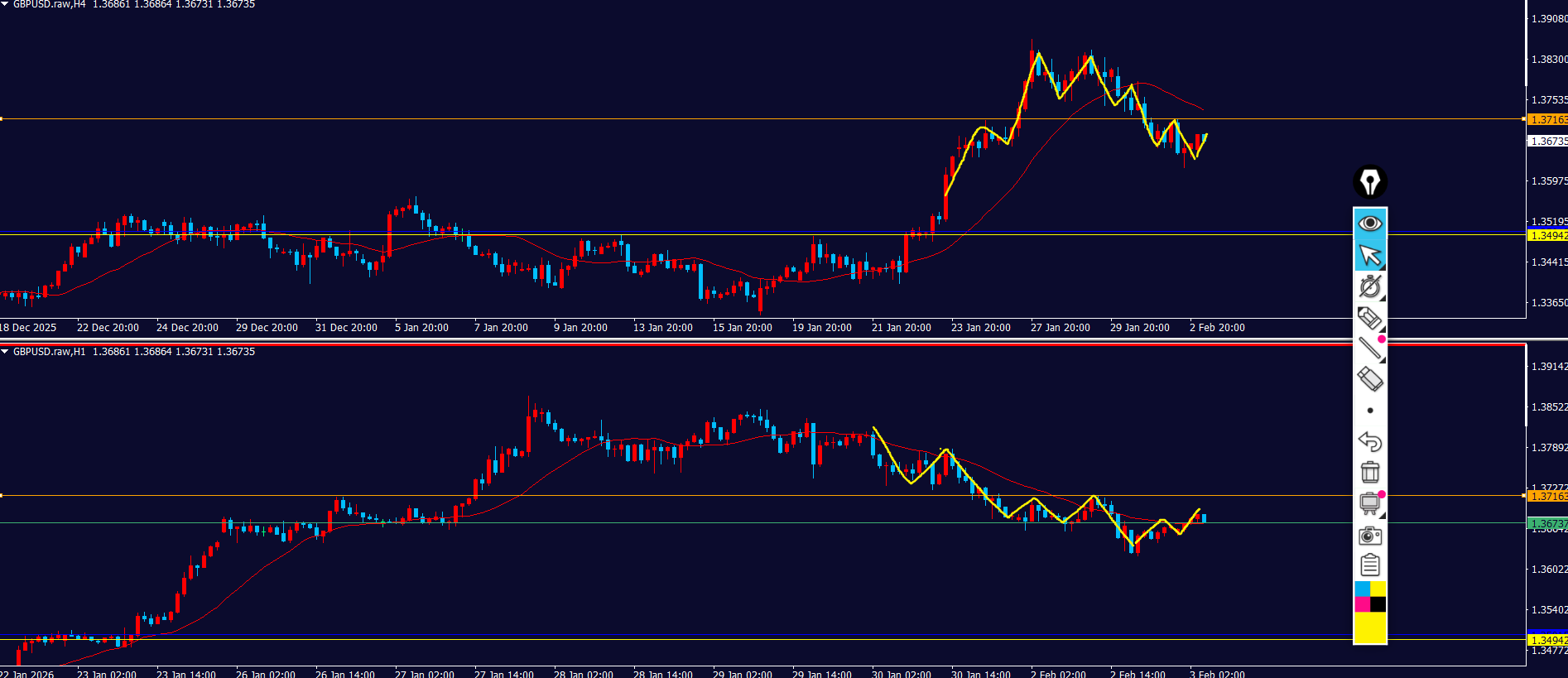 1hの押し目買いを狙うにも4hの水平線と距離が近いので、無理して狙う必要もない
