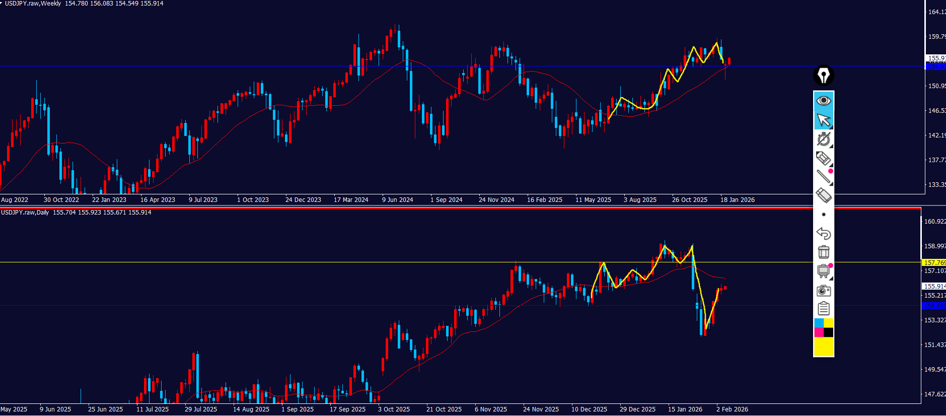 - 黄色ラインの下に押し目買い勢力がいる⇒波が出やすい
