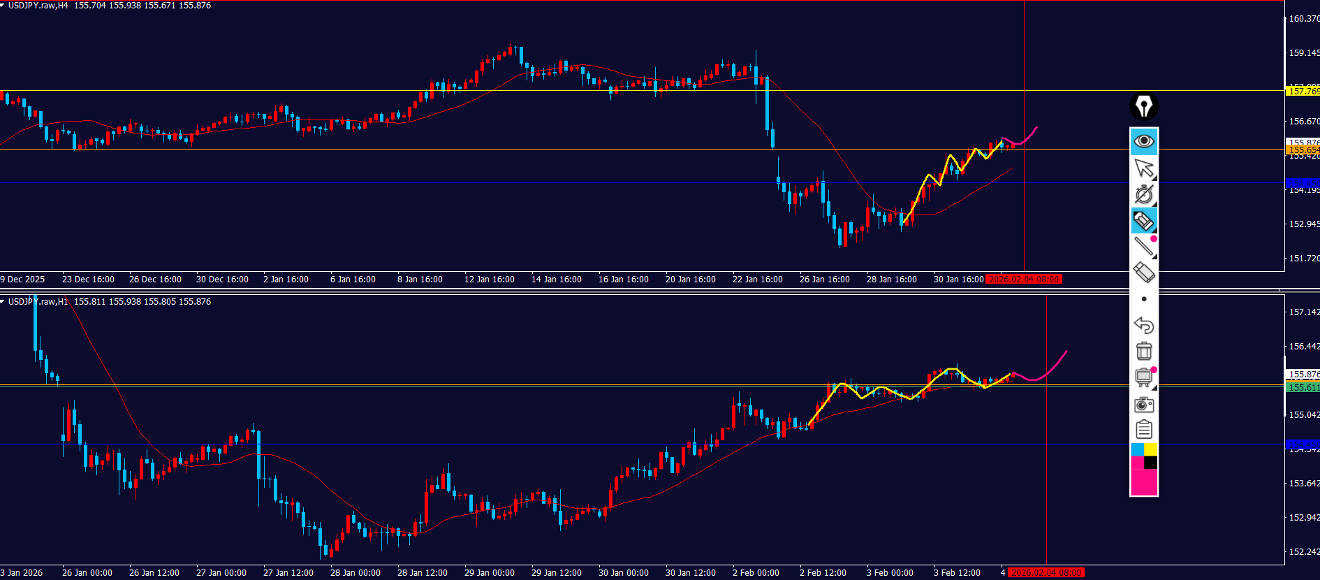 4hが上昇の波の根っこにいるけど、いまいち上昇の勢いを感じない。