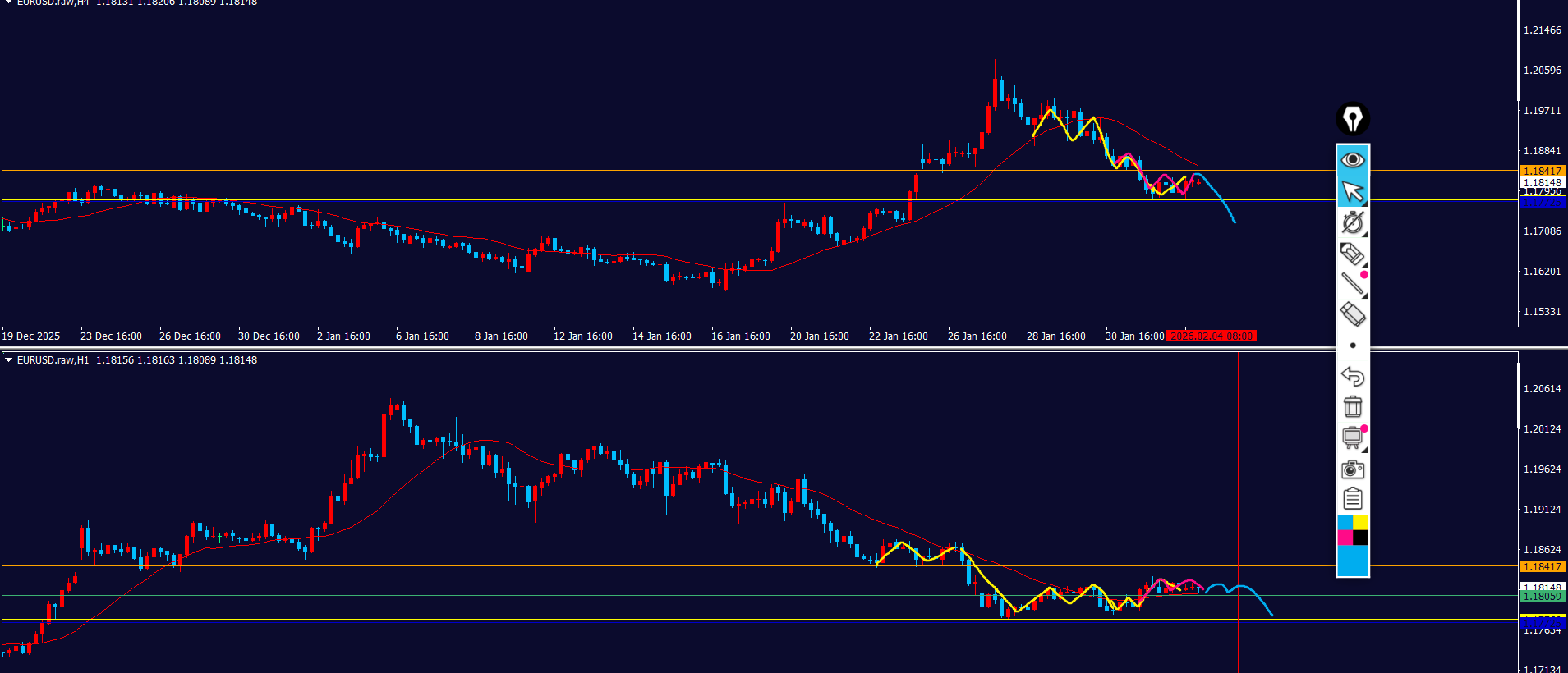 次のトレードは勝てるかは、何が起こるかわからない - 4時間の波は、1時間の注文の集中抜け(1時間が準備ができたか)がエントリポイント