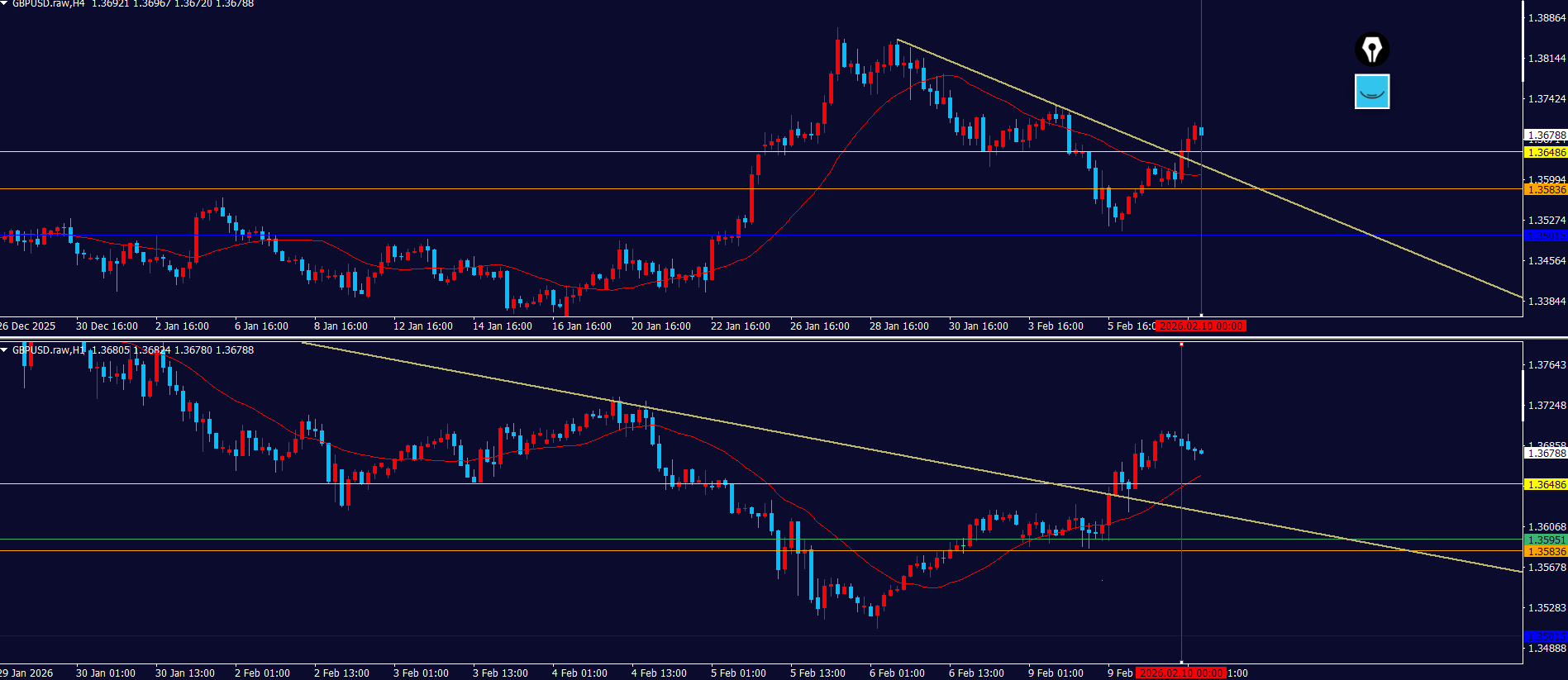 日足の戻り売り付近にいて、4hでも買いと売りの両方のダウカウントが見える。