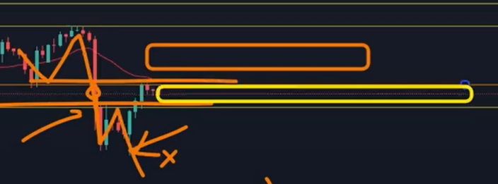 - 日足の戻り売り勢力(黄色)が、4H足の戻り売り勢力(オレンジ)より下にいる場合でも、軸足が4H足ならば4Hの戻り売り勢力を待たねばならない。日足の戻り売り勢力でいいやにはならない。