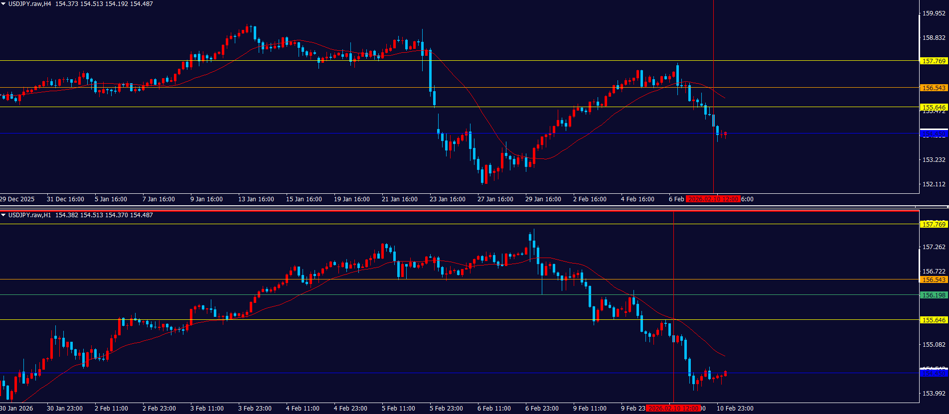 - 後々見返すと4hと1hが同時に抜けてきていたので、攻防ライン抜けで下落を