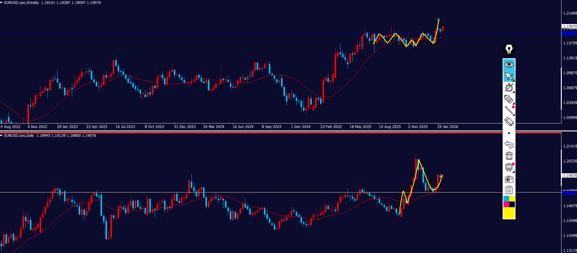 - 黄色ラインの上に戻り売り勢力がいる⇒波が出やすい
