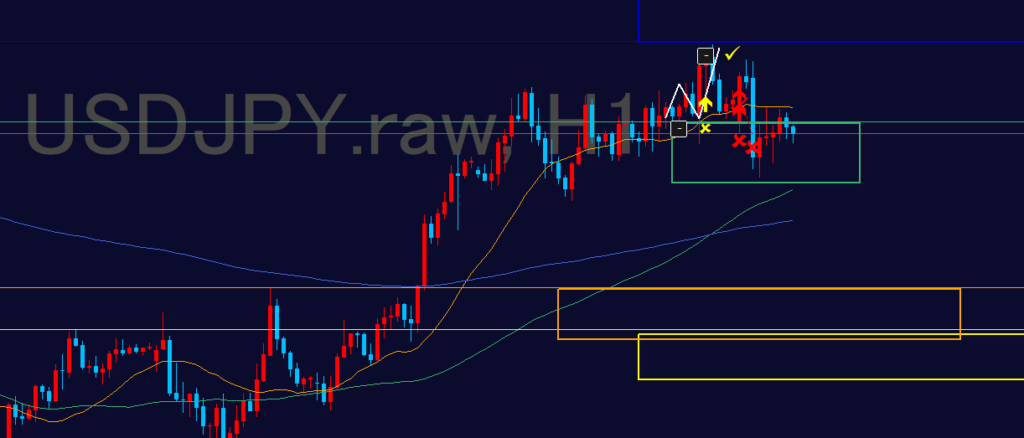 - 1hが波に出やすい所ではないので、「4hに派生したら」とか考えてはいけない局面
