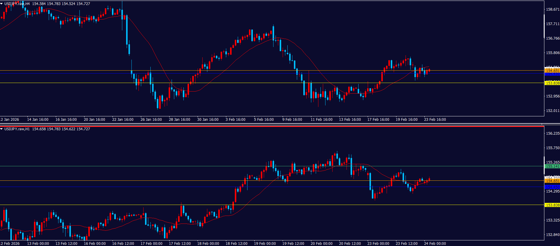 4hと1h同時に抜けてるので、攻防ライン抜けのエントリーに注意。