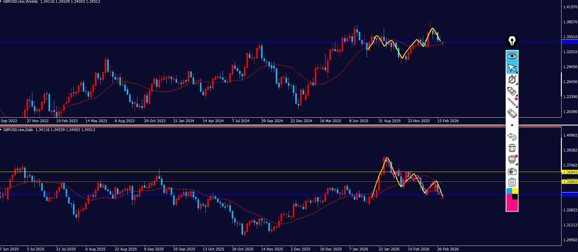 引き続き週足と日足が戦争状態。