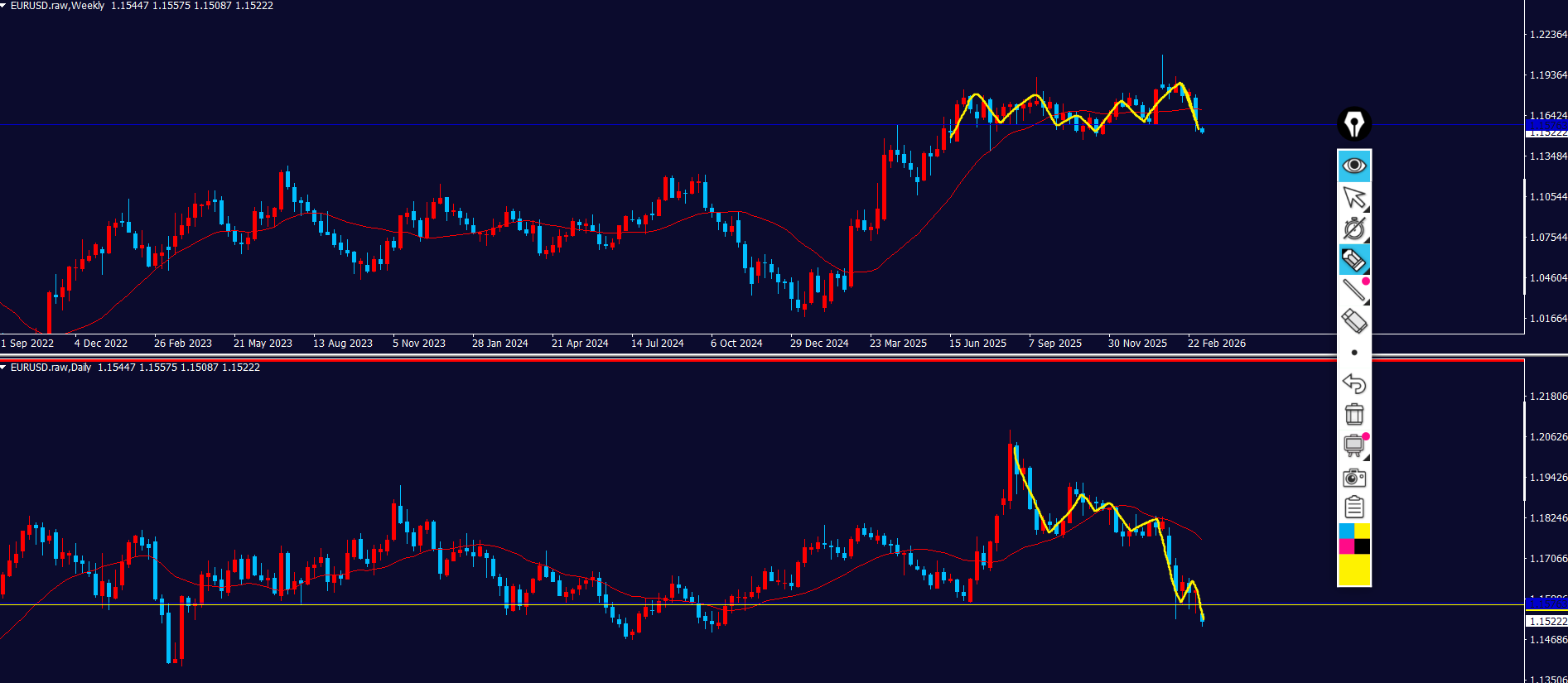 - 週足:下方向にトレンド転換した?⇒下方向強