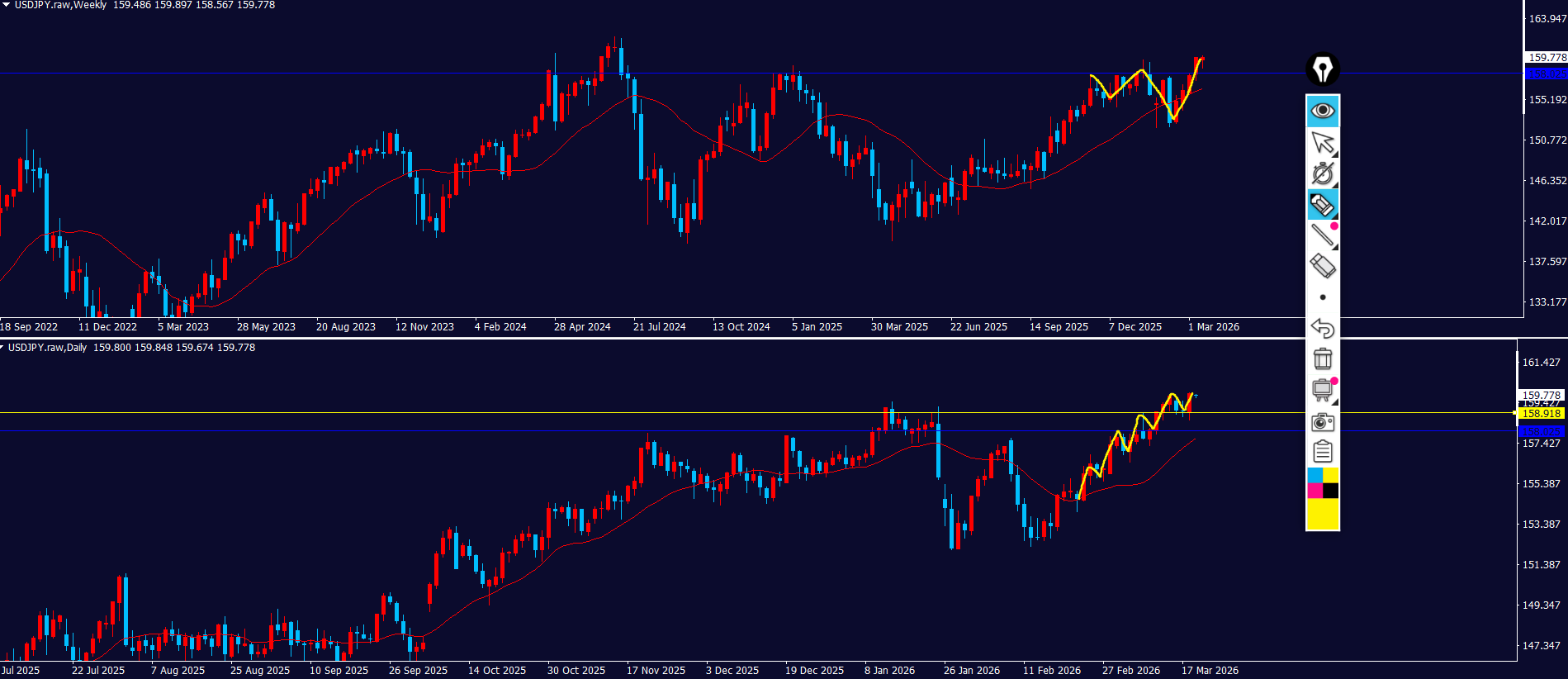 上に160円のキリバンがいるせいか?上が重たい感じもするけど、環境認識的には上であることは間違いないので、上昇を狙っていく