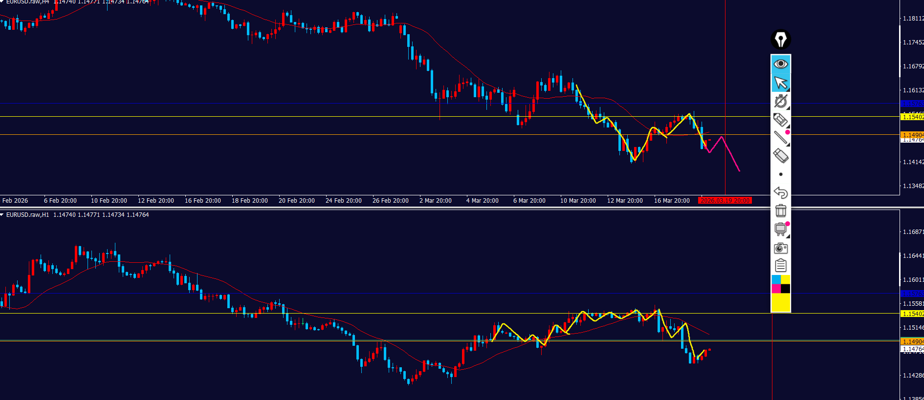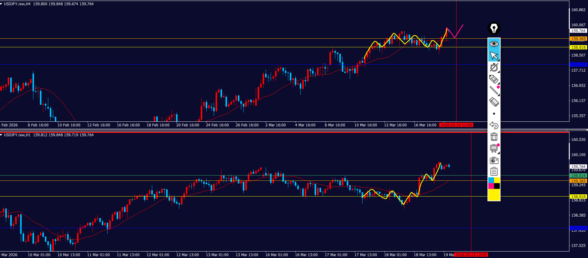 1hも同じ状況で、早い波が出るのかしっかり4hの時間経過を待つのか見極める