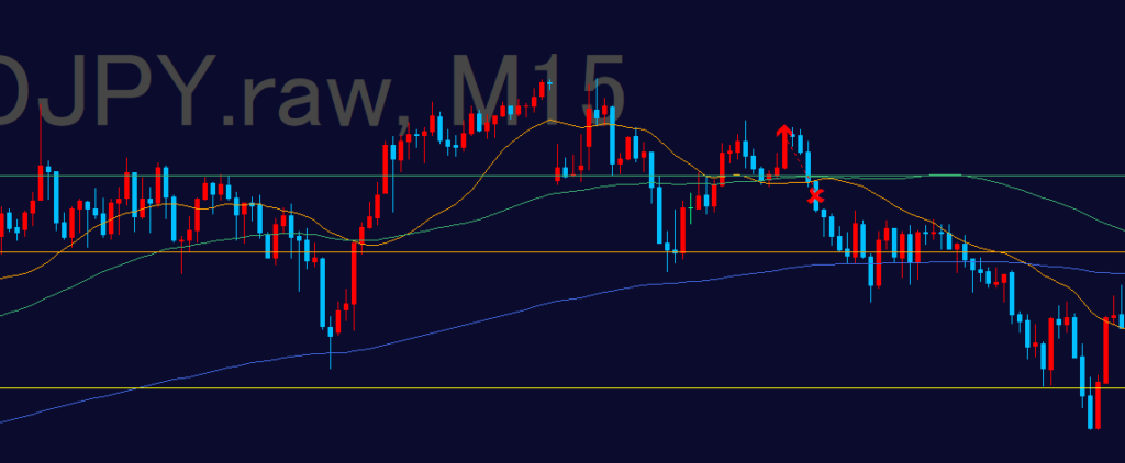 - 15分足や1時間足のローソク足が確定するまで待つ