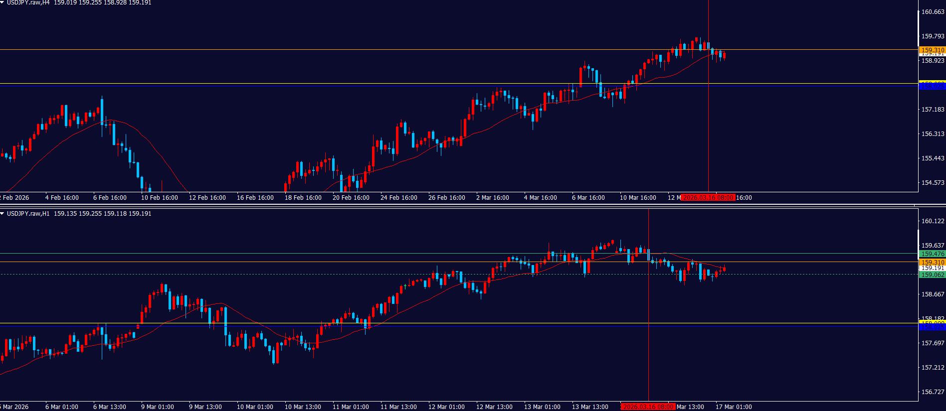 4hのMAの位置が気になる。時間経過とともにどういう位置関係になるのか見ていく。