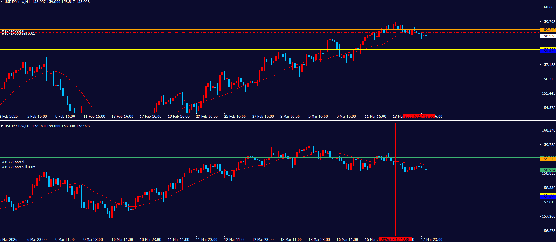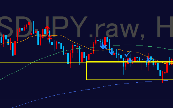 - 改めて狙っていた1hの注文の集中をMAも抜けてきたので、再度売りでエントリー。