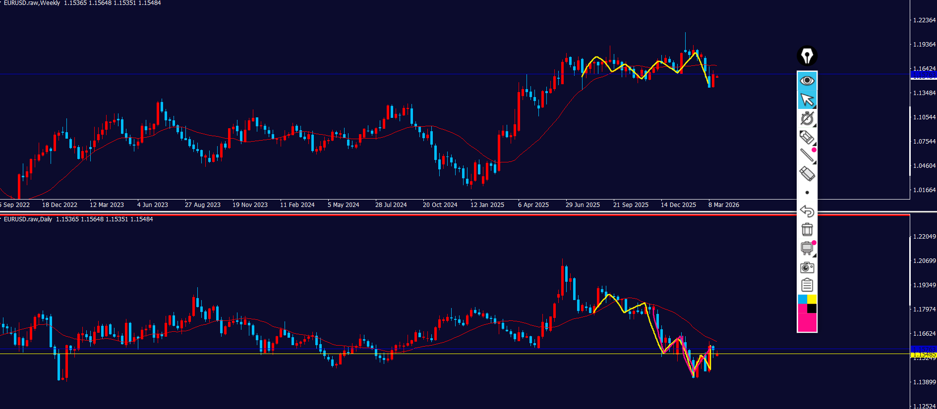- ピンクのダウカウントの方が優位かなと思ってたけど、MAデモぴったり止められてて、買いの方が市場参加者見てそう