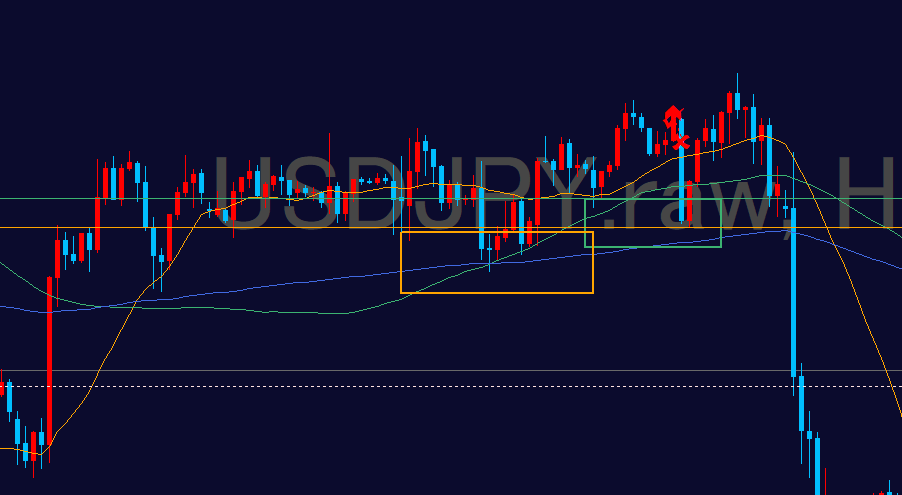 - オレンジラインの上に戻り売り勢力がいる⇒波が出やすい