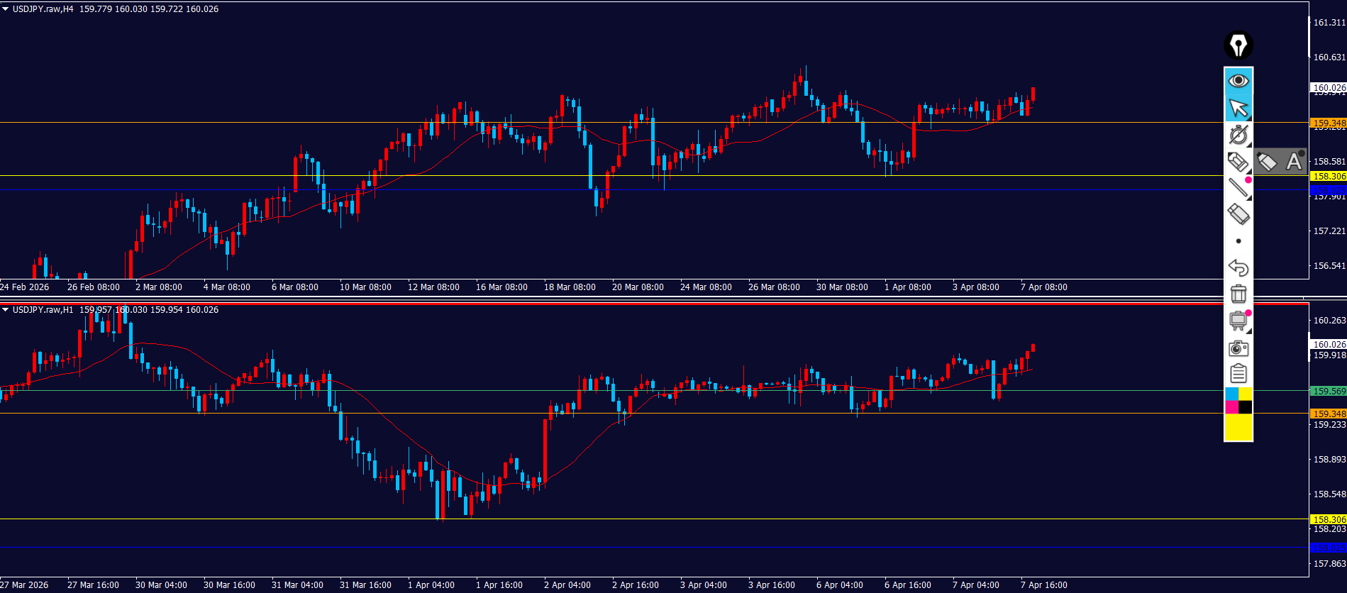 セオリー通りで行ったら4hで調整~トレンド転換待つのが良い。