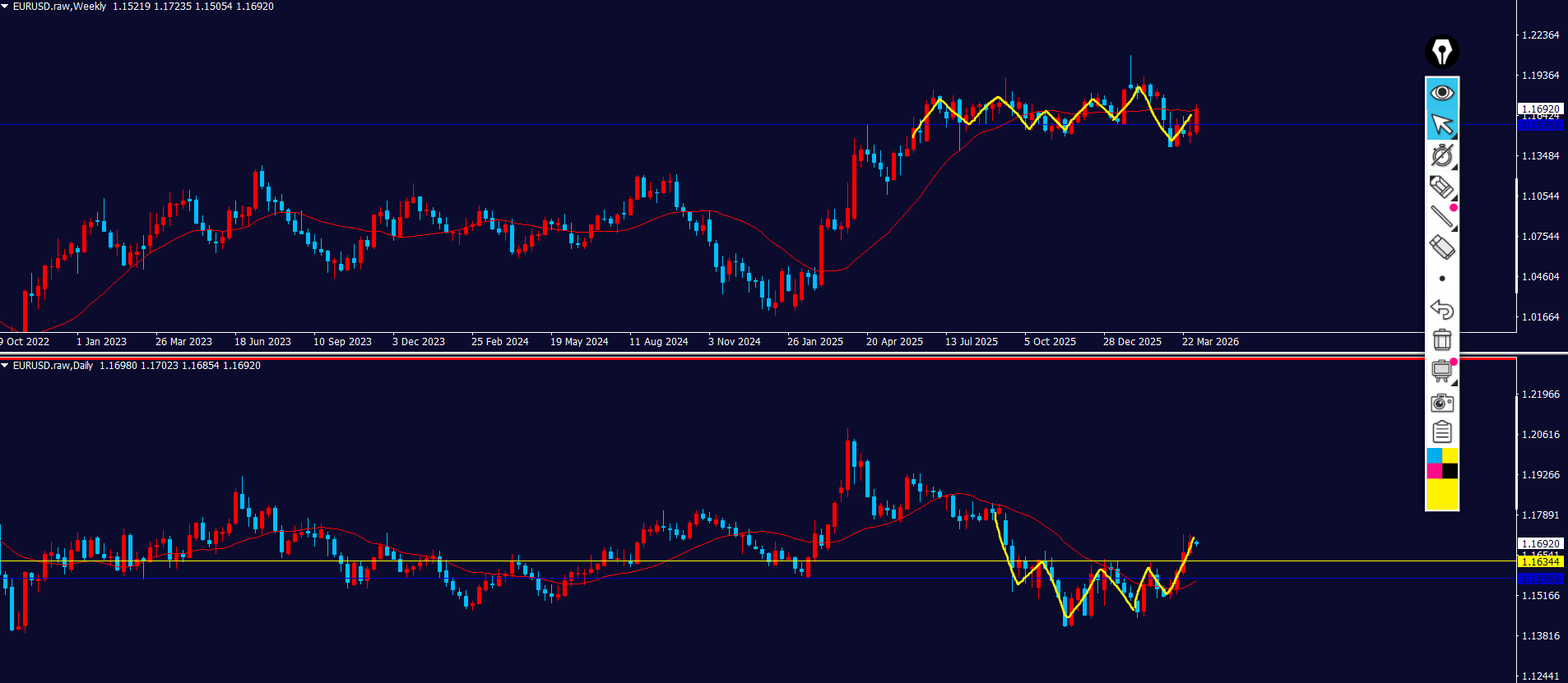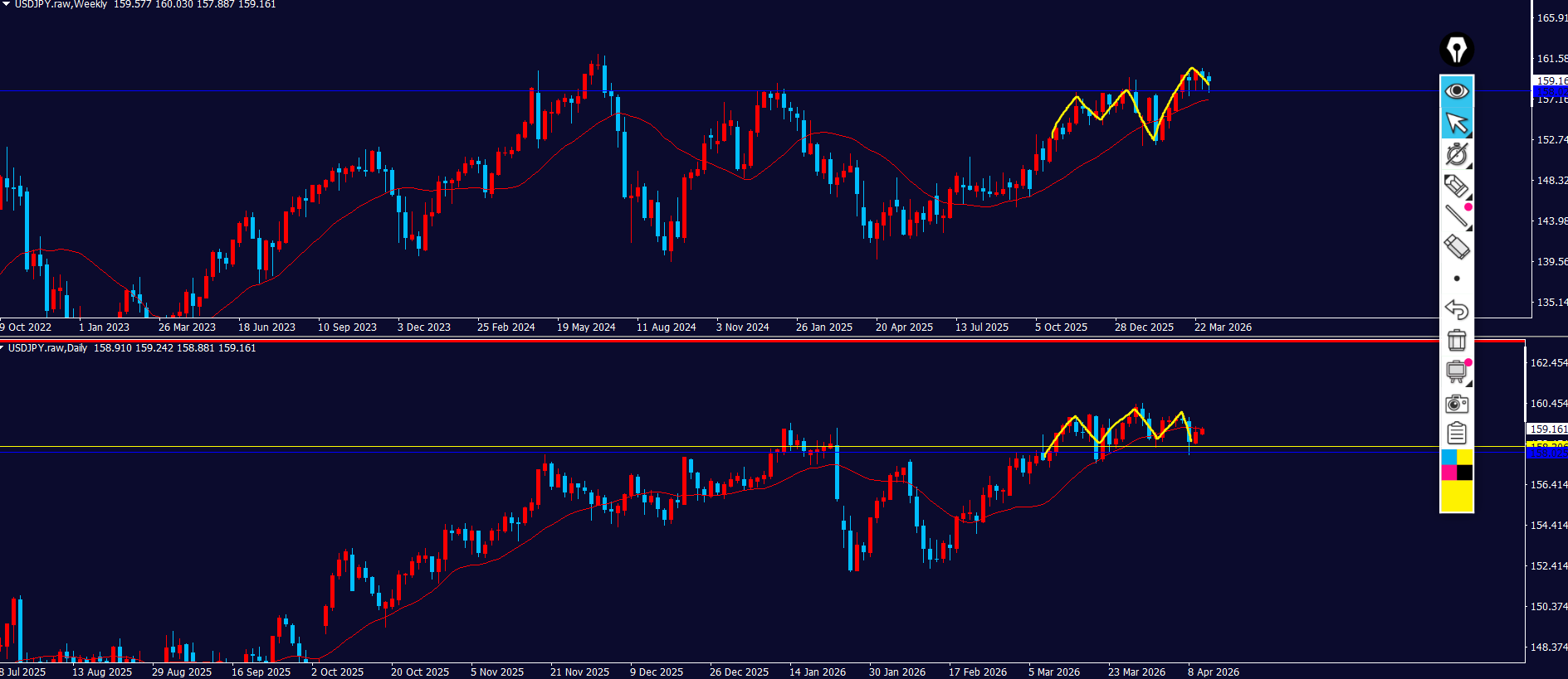 - 日足:上方向の調整⇒上弱