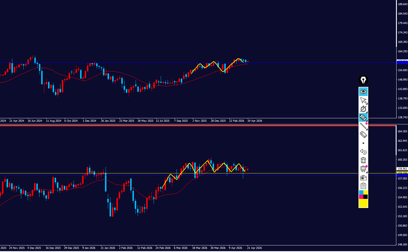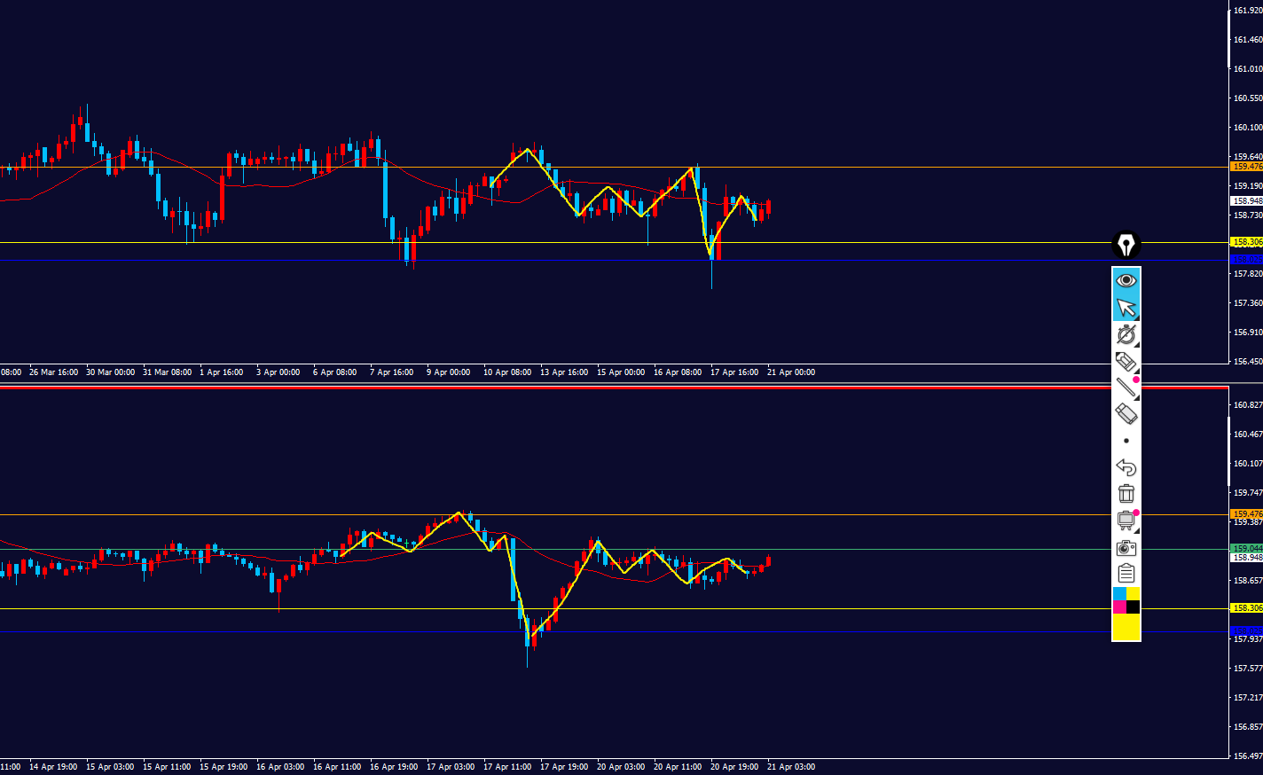 - 黄色ラインの下に押し目買い勢力がいる⇒波が出やすい
