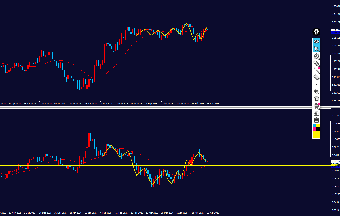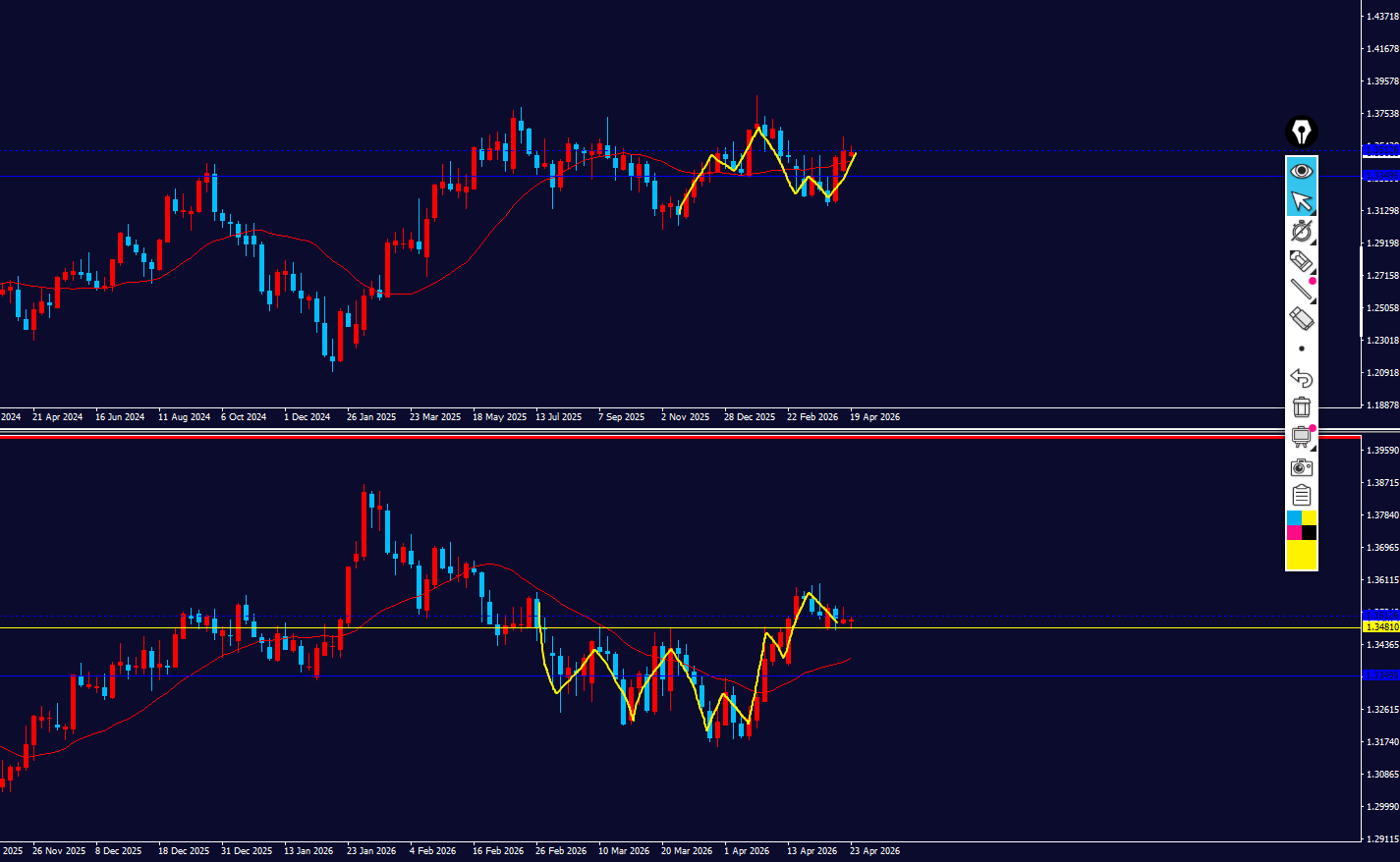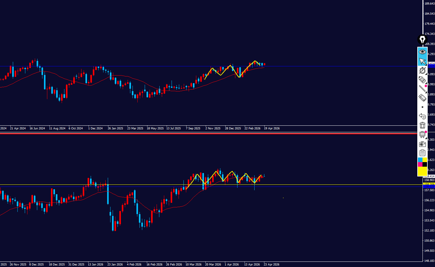 - 日足:上方向の調整⇒上弱