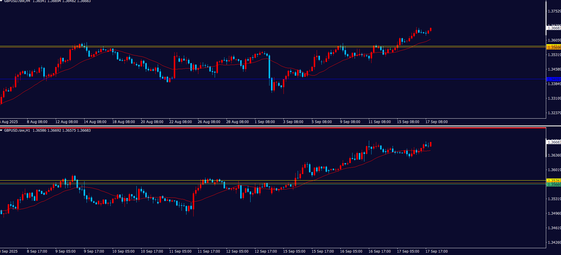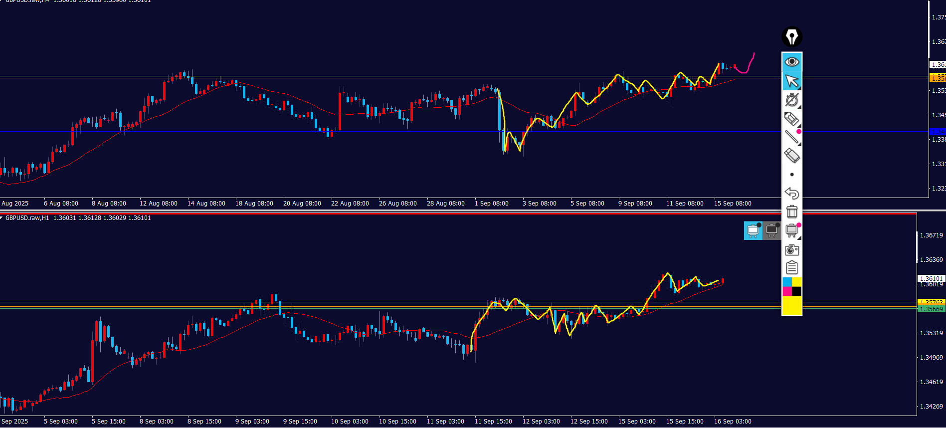 - 4時間足と1時間足同時にトレンド転換したら「攻防ライン」を見る