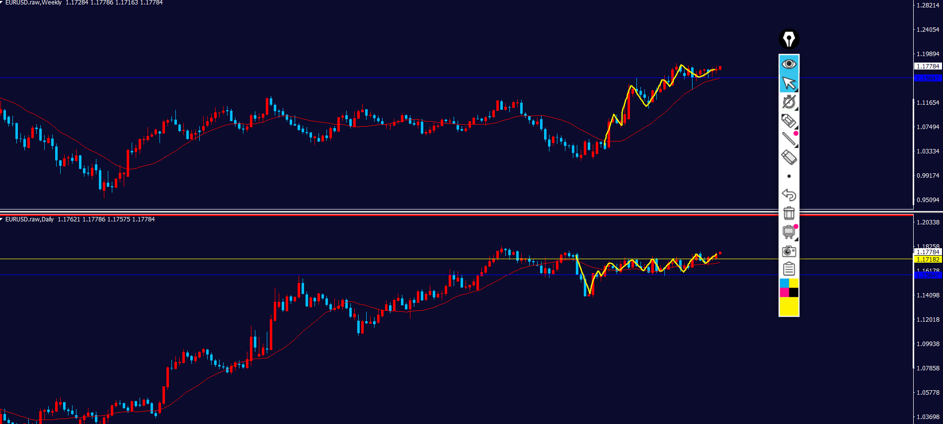 黄色ラインの下に押し目買い勢力がいる⇒波が出やすい(ピンク線イメージ)