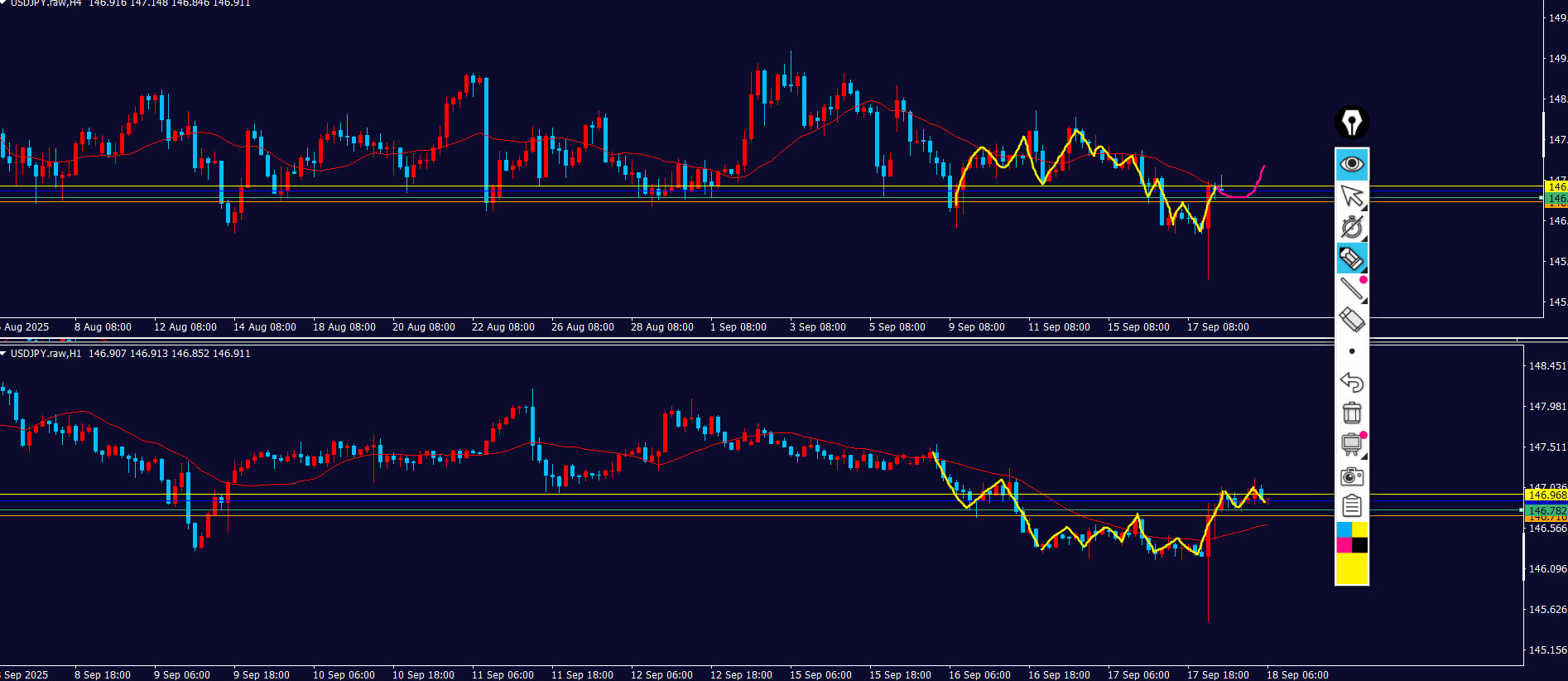 黄色ラインの上に戻り売り勢力がいる⇒波が出やすい