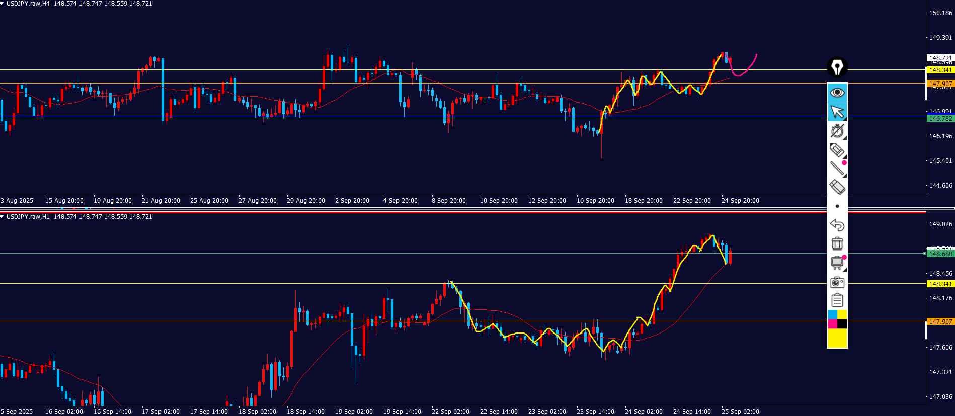 オレンジラインの上に戻り売り勢力がいる⇒波が出やすい