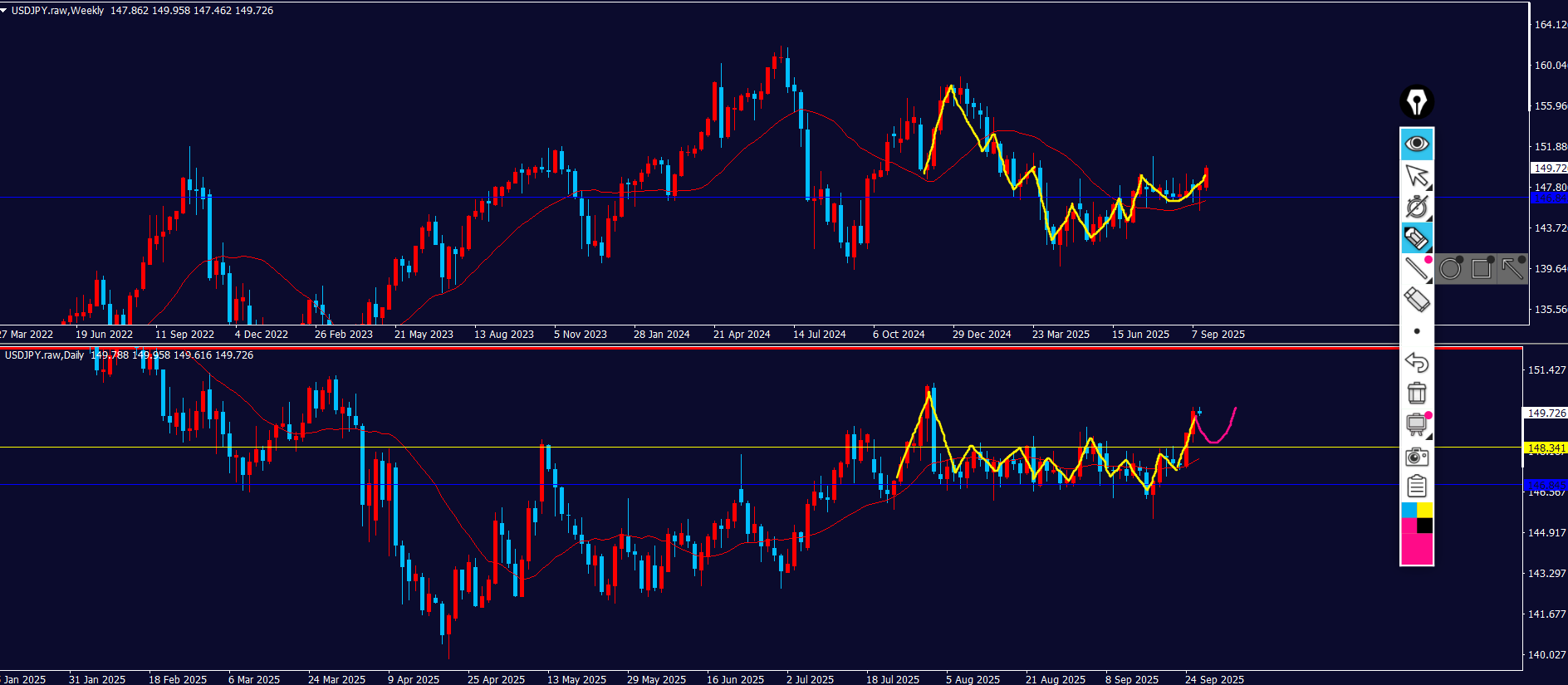黄色ラインの下に押し目買い勢力がいる⇒波が出やすい