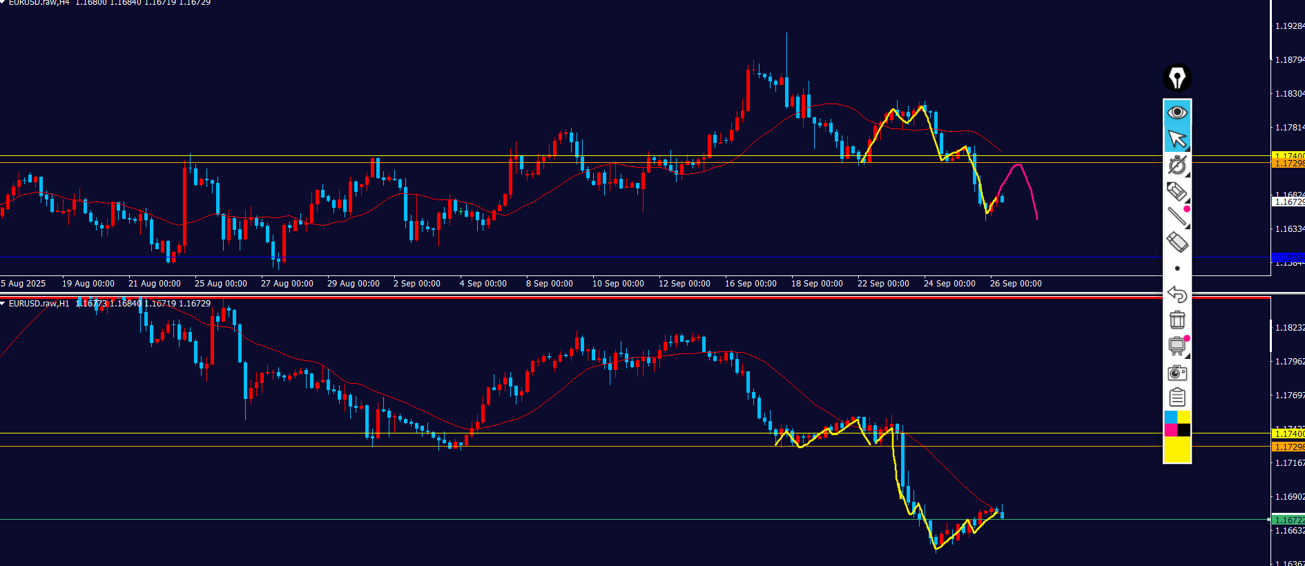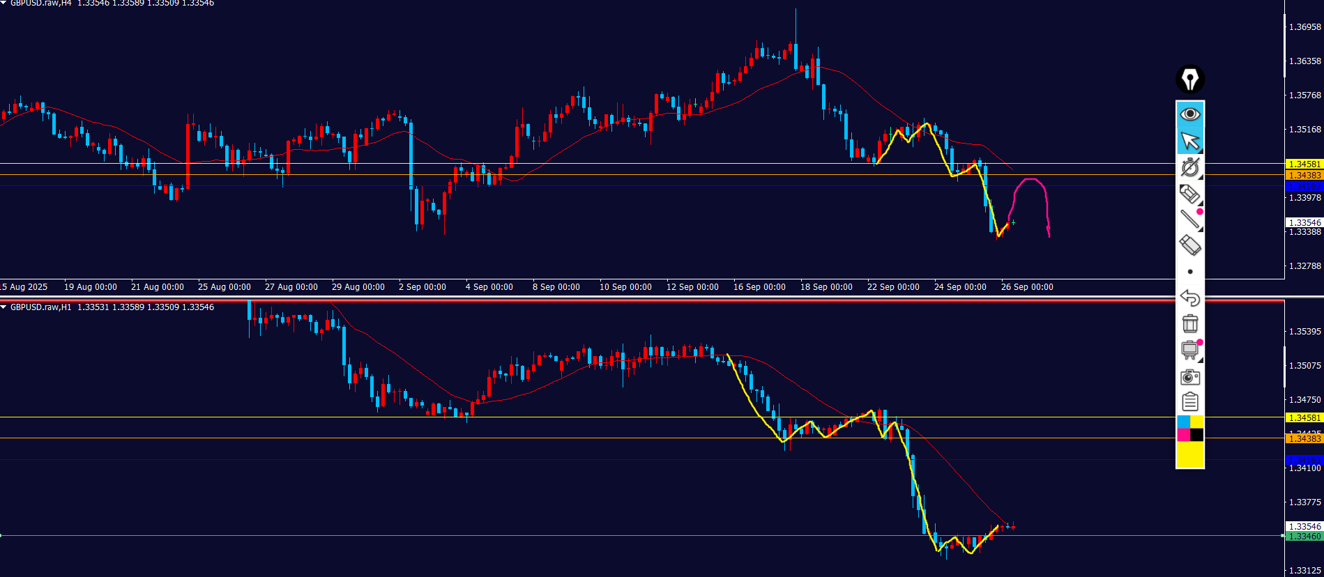 - 4時間足と1時間足同時にトレンド転換したら「攻防ライン」を見る