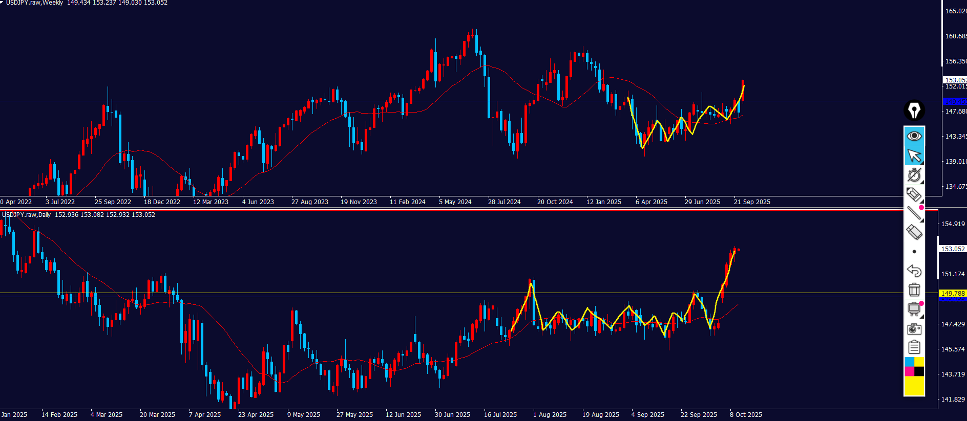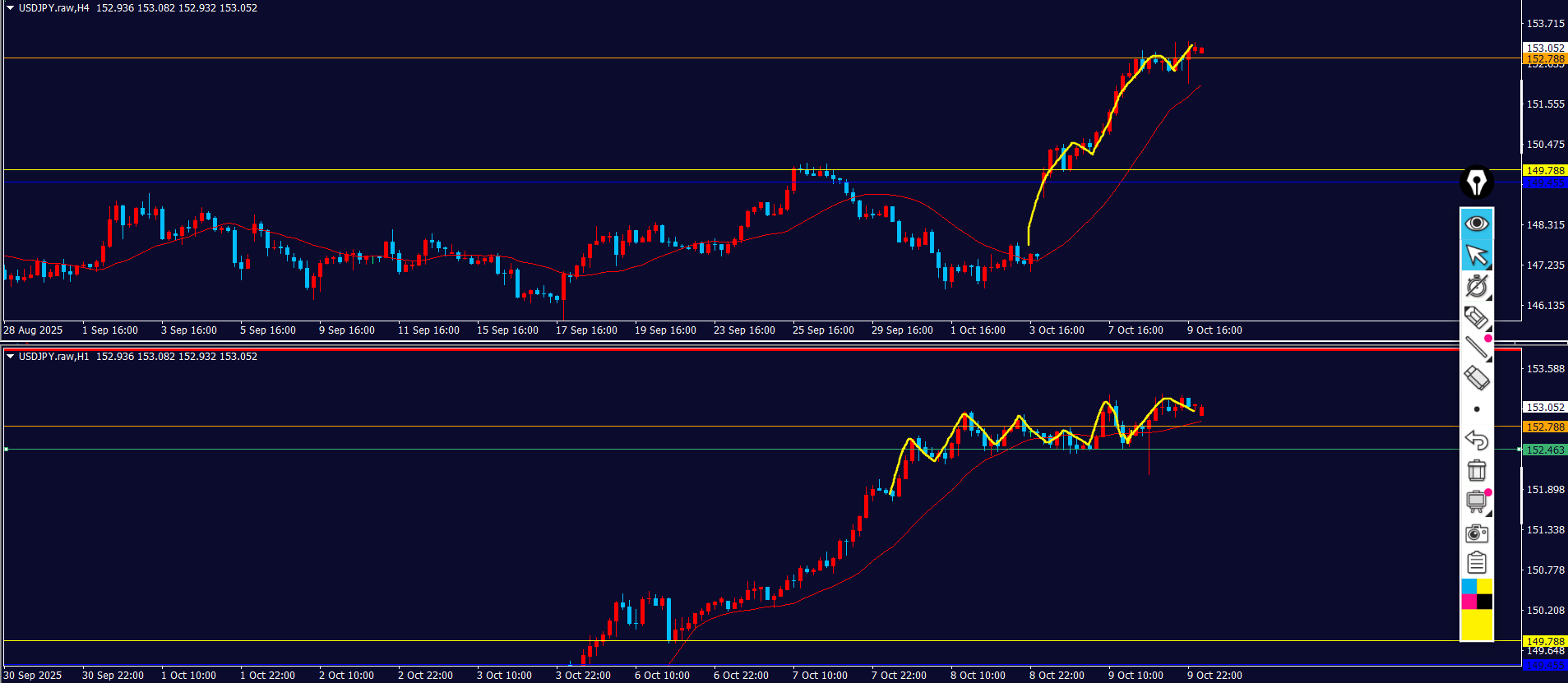 黄色ラインの下に押し目買い勢力がいる⇒波が出やすい