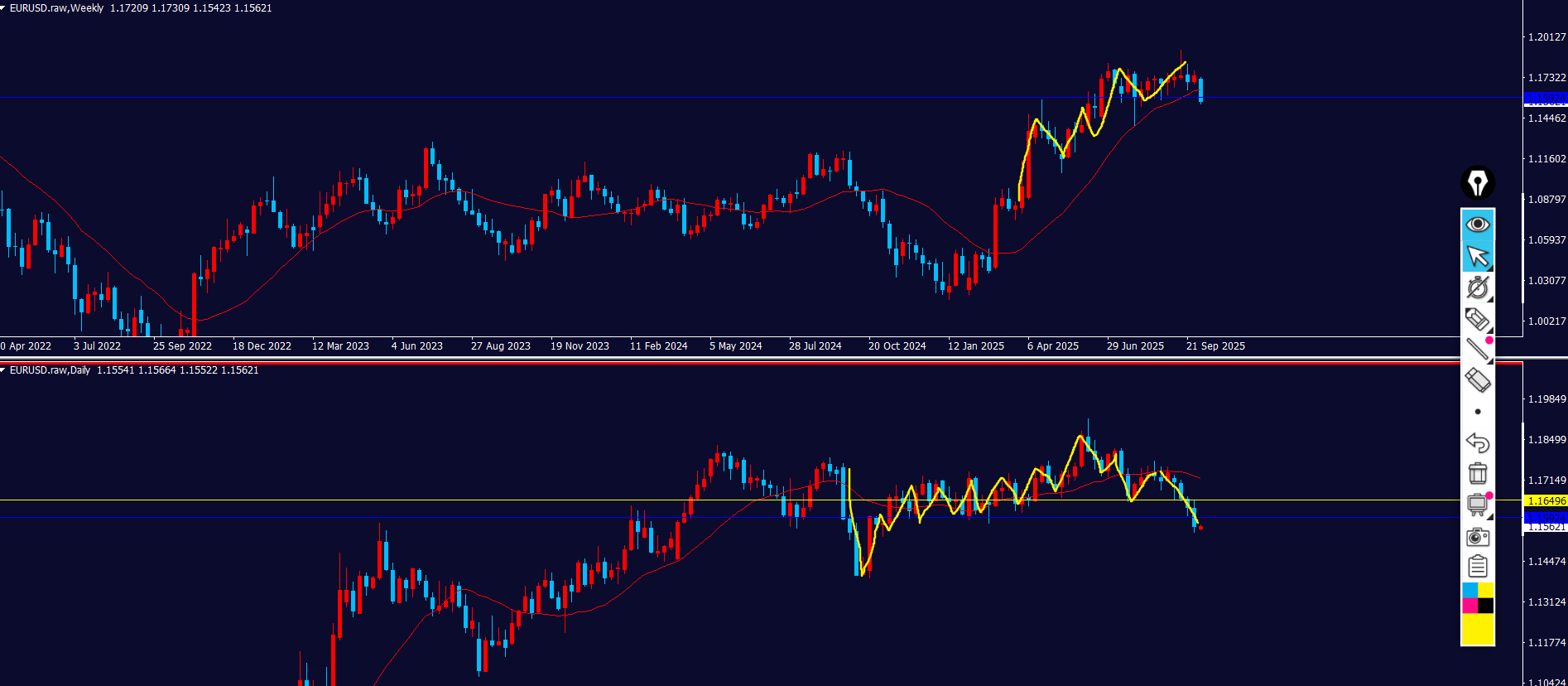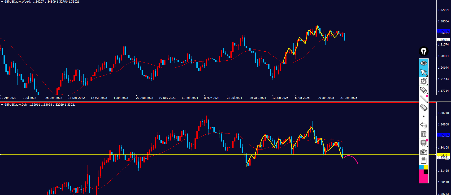 黄色ラインの上に戻り売り勢力がいる⇒波が出やすい
