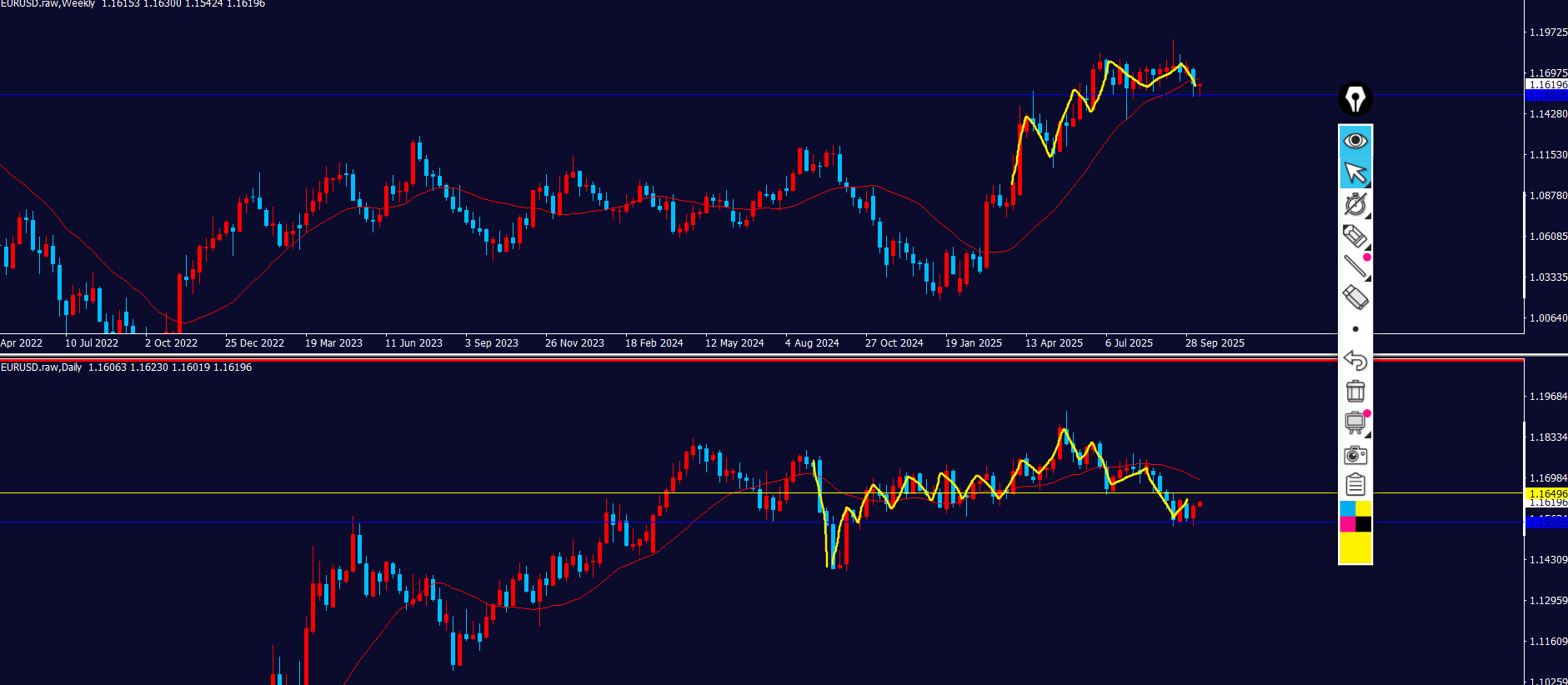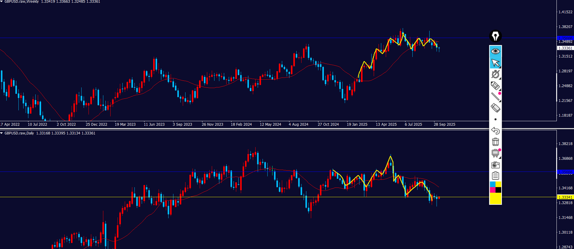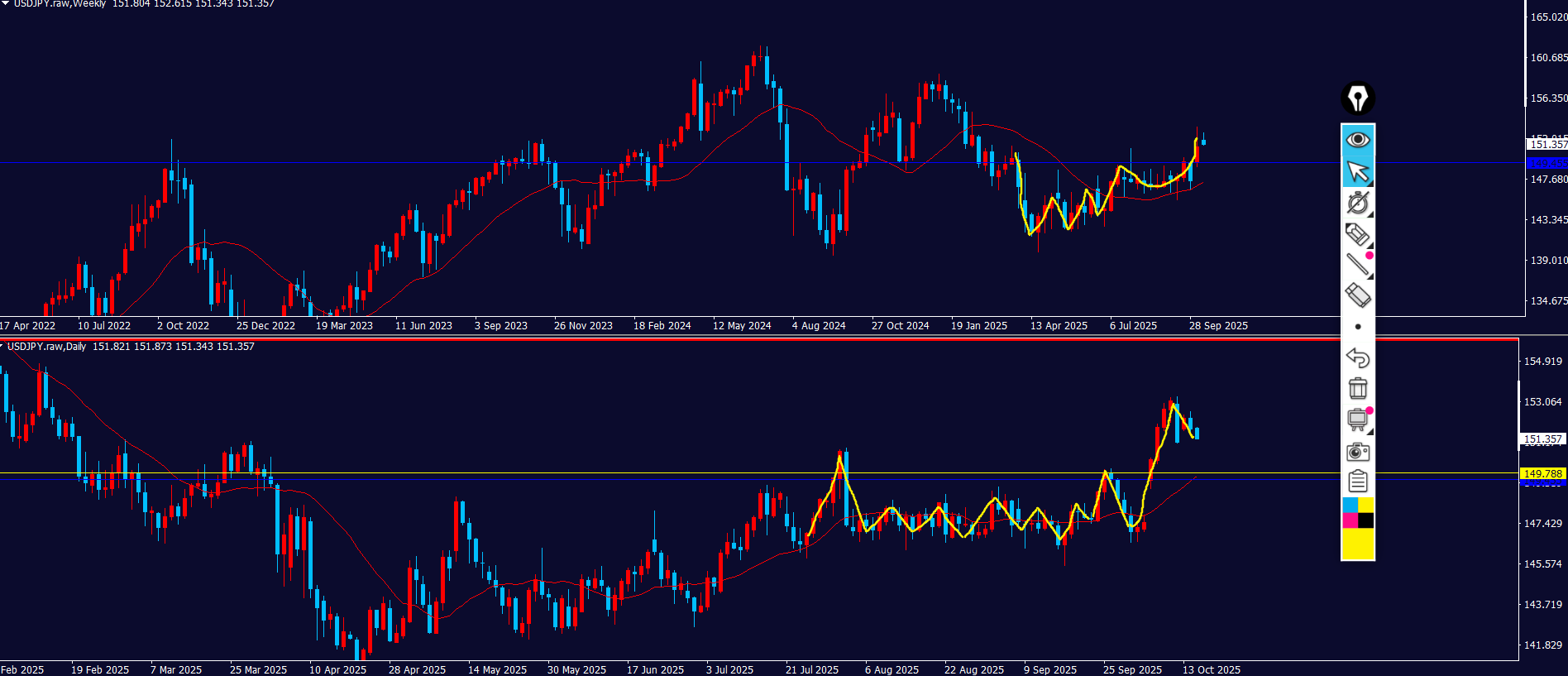週足の買い支えに反応して日足と週足で戦争状態。決着が続くまでヨコヨコが続くかも。